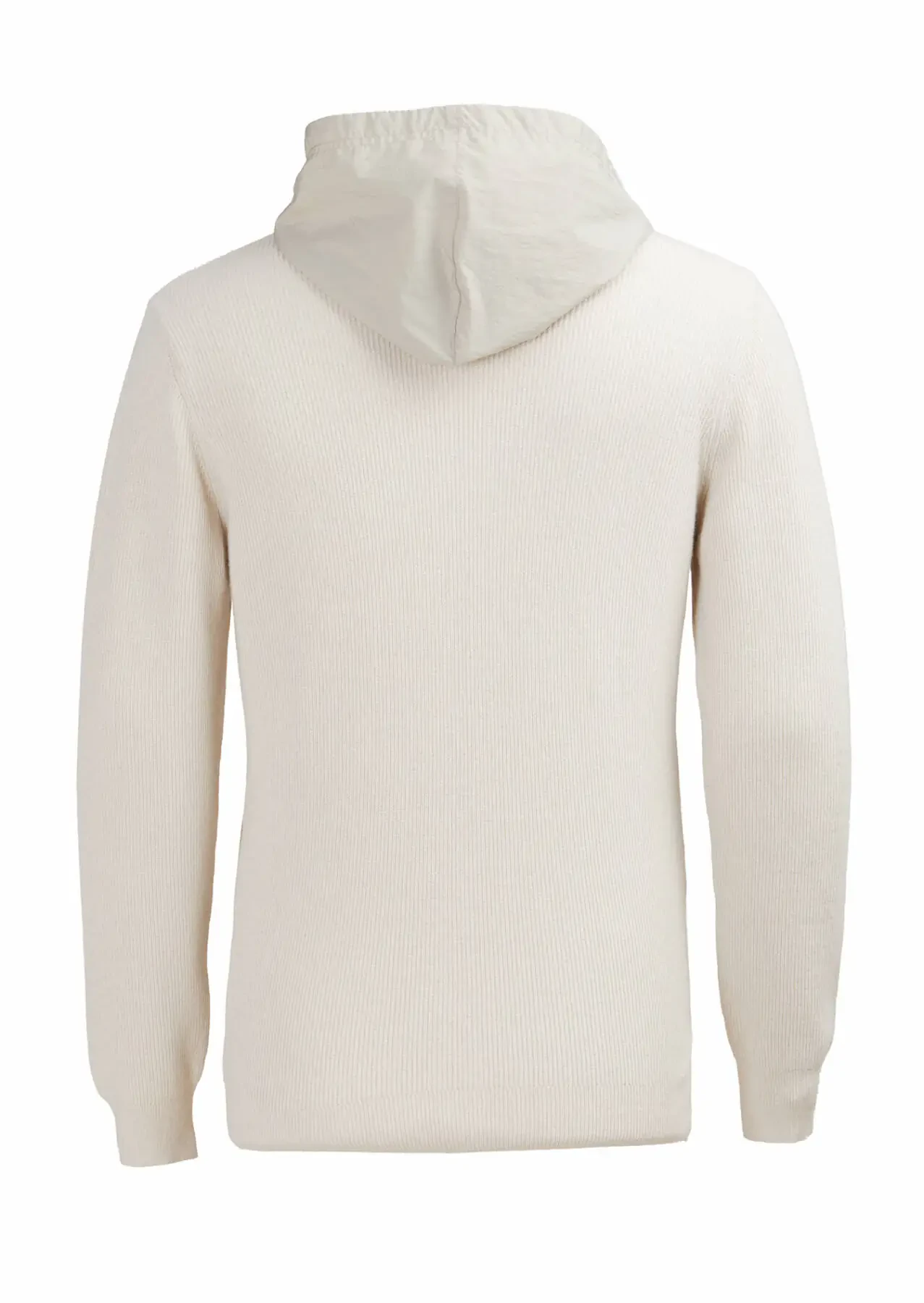 Ekru Kapüşonlu Düz Örgü Yün Karışımlı Hırka