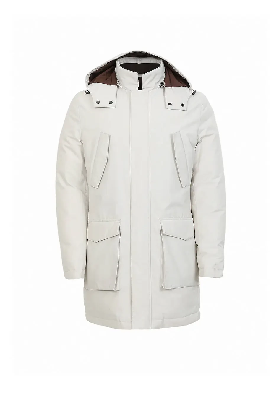 Ekru Regular Fit Kapüşonlu Casual Dokuma Kaban