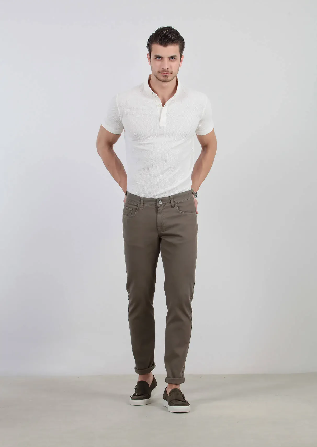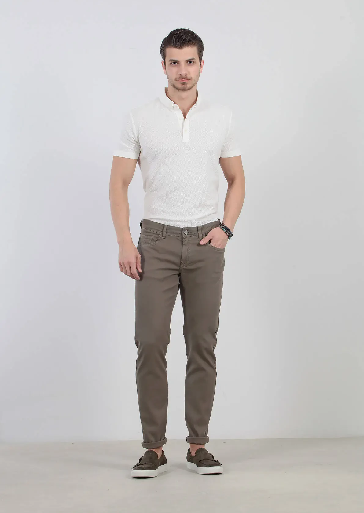 Green Weaving Slim Fit Casual Cotton Blended Trousers