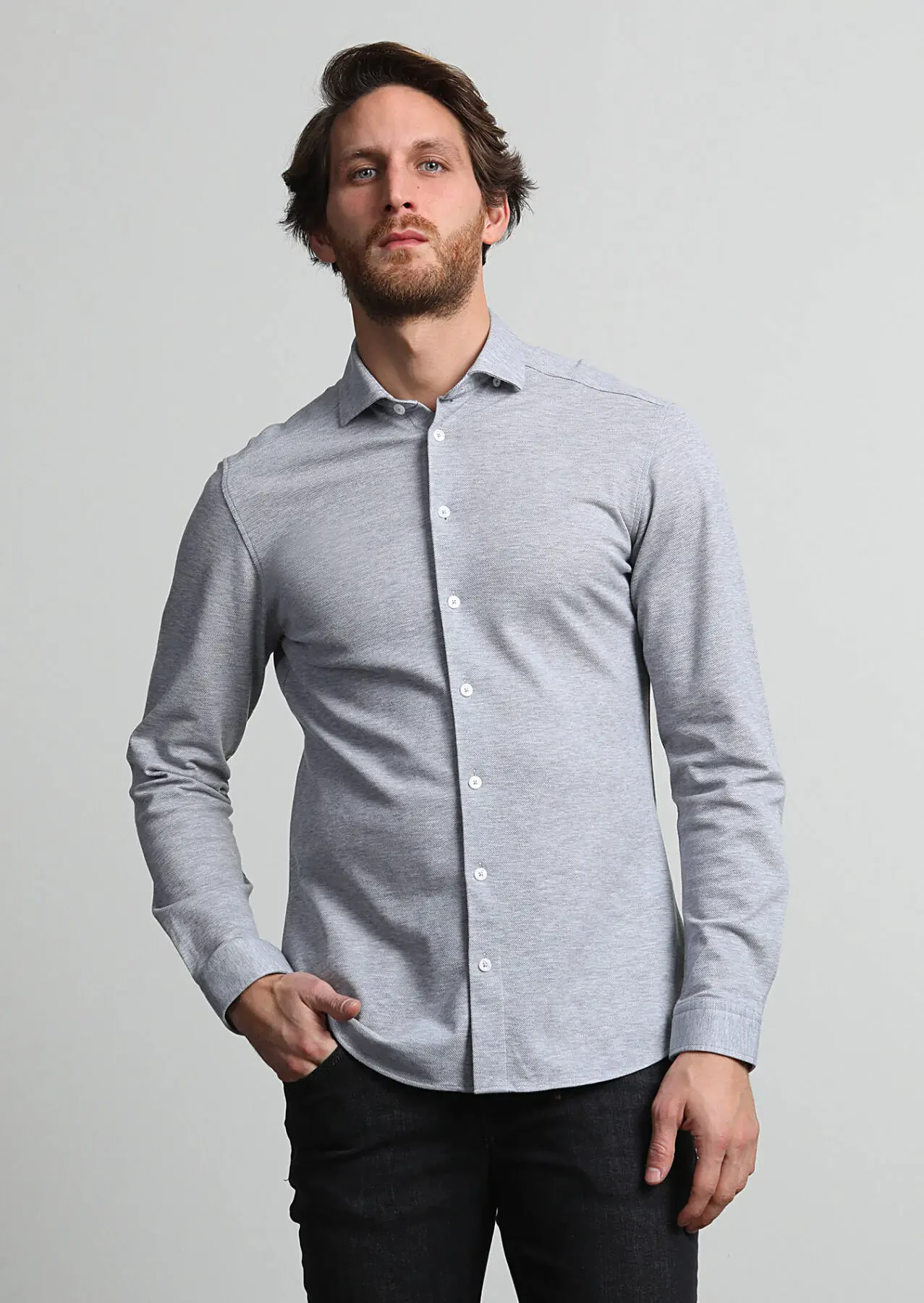 Grey Fitted Fit Knitting Casual 100% Cotton Shirt