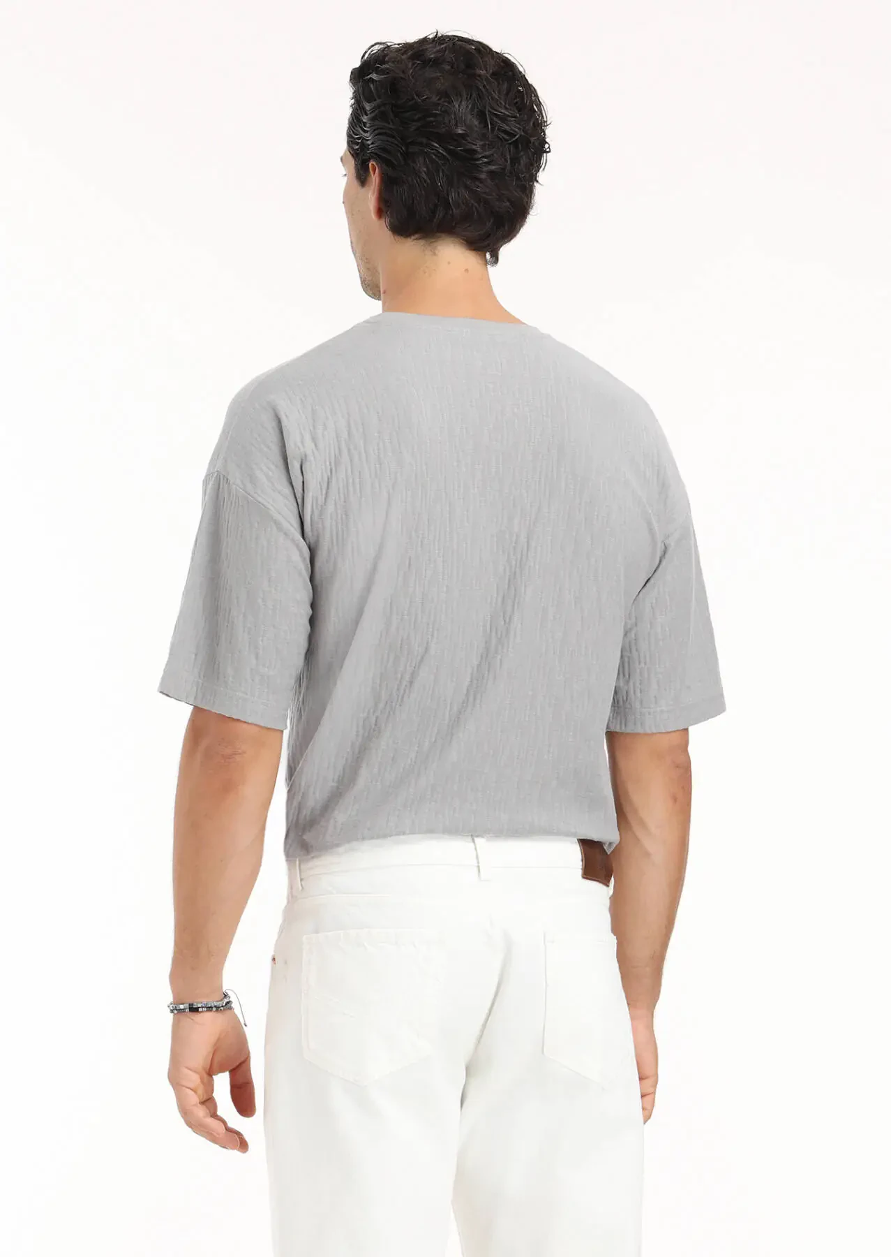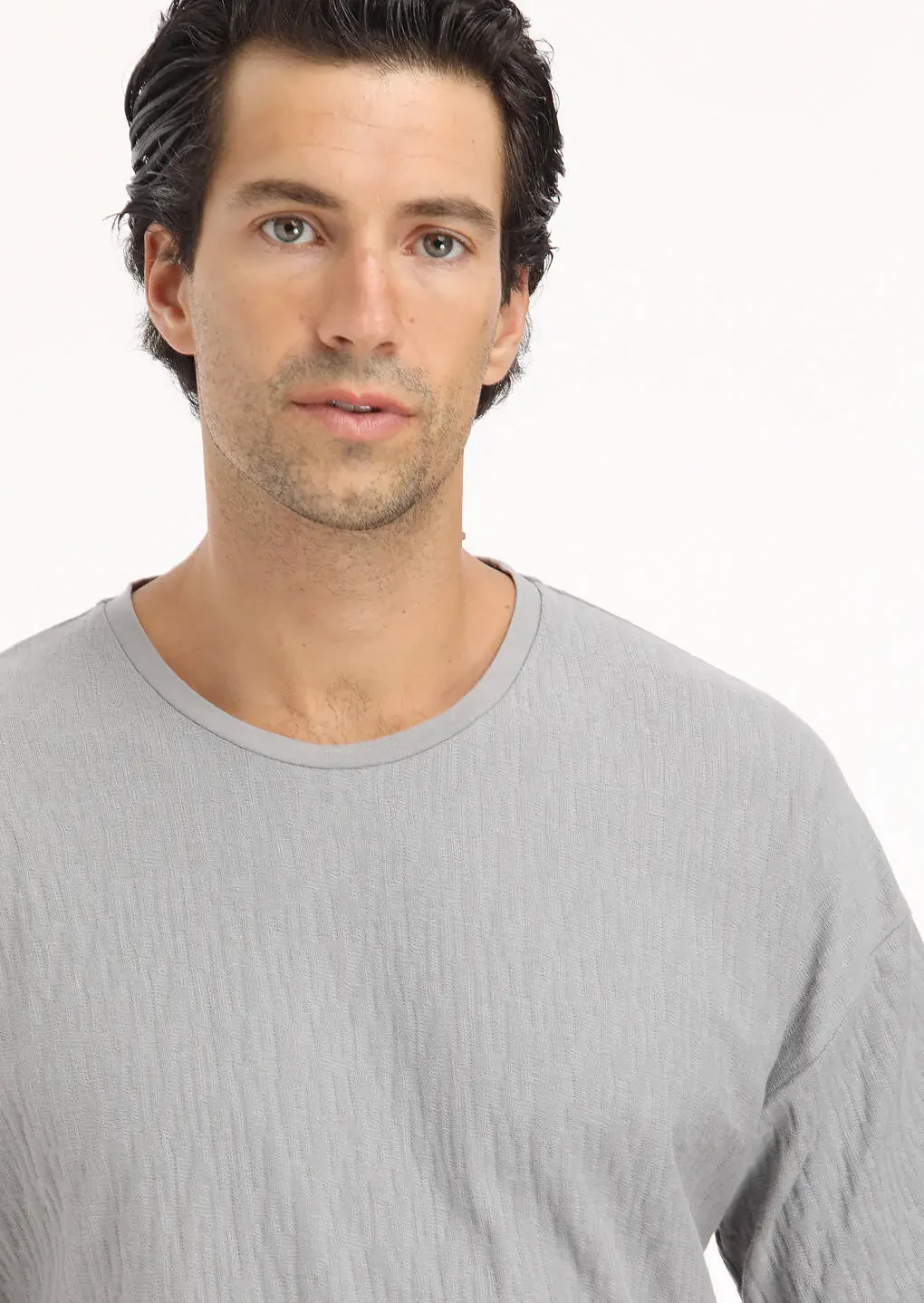 Grey Jacquard Crew Neck 100% Cotton T-Shirt