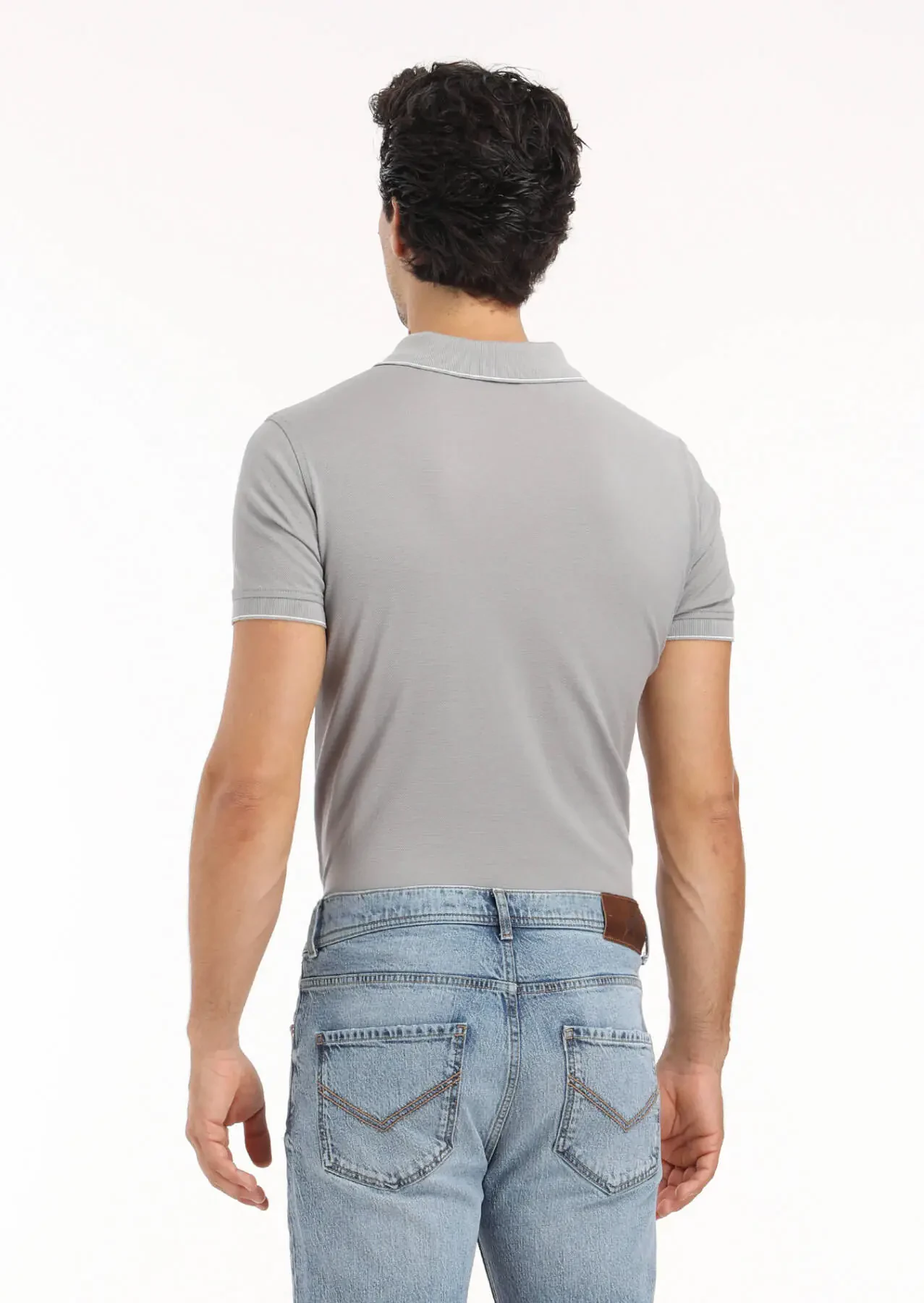 Grey Jacquard Polo Neck 100% Cotton T-Shirt