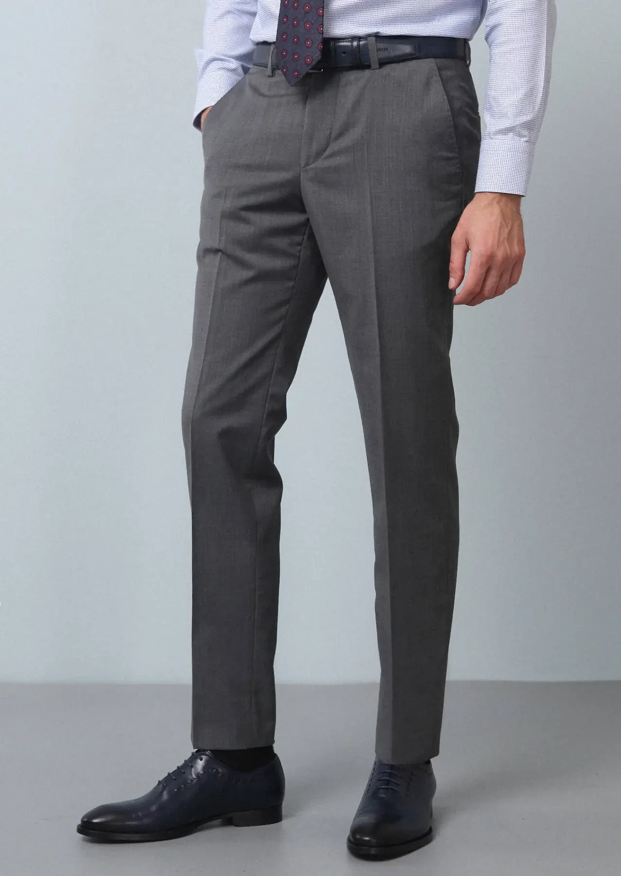 Grey Material Modern Fit Classical 100% Wool Trousers