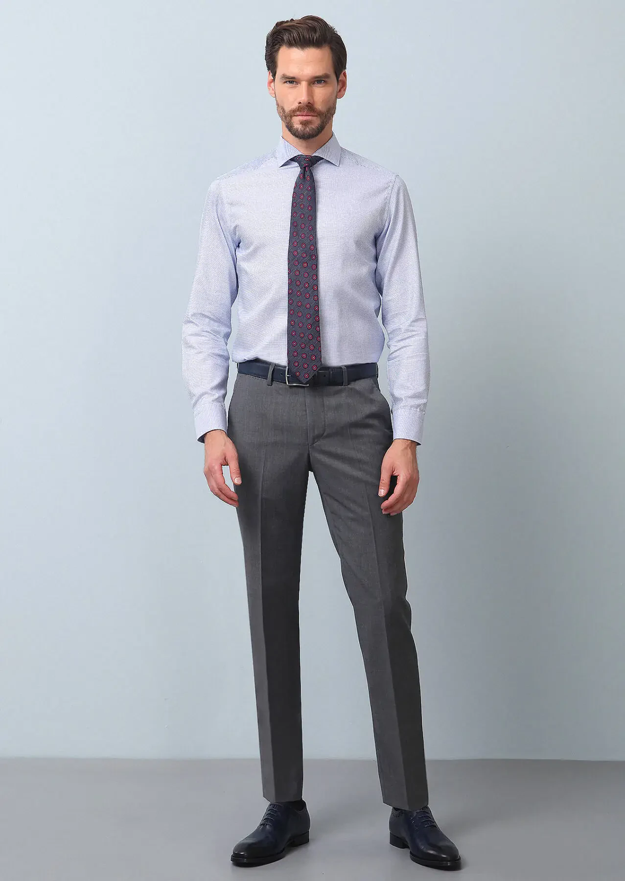 Grey Material Modern Fit Classical 100% Wool Trousers