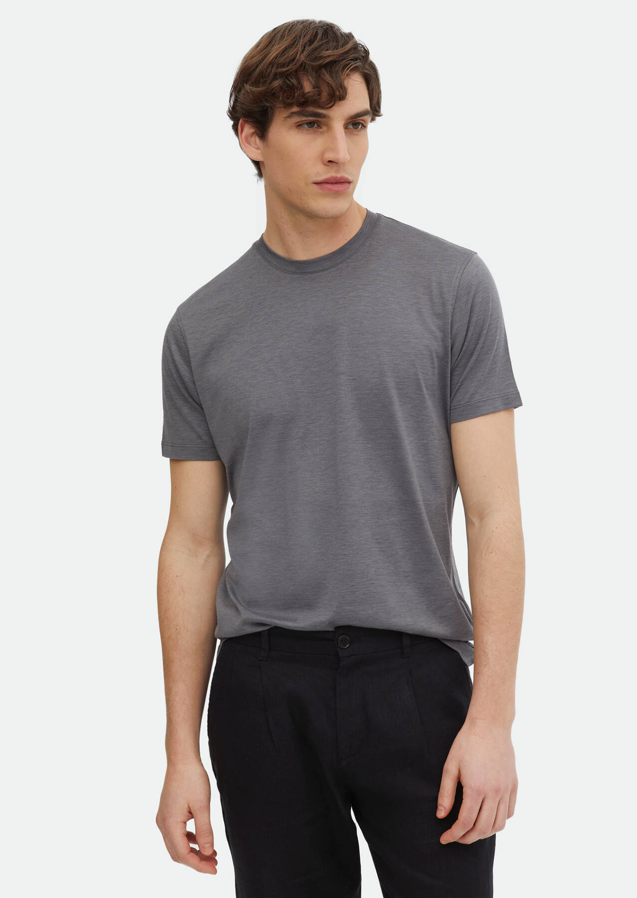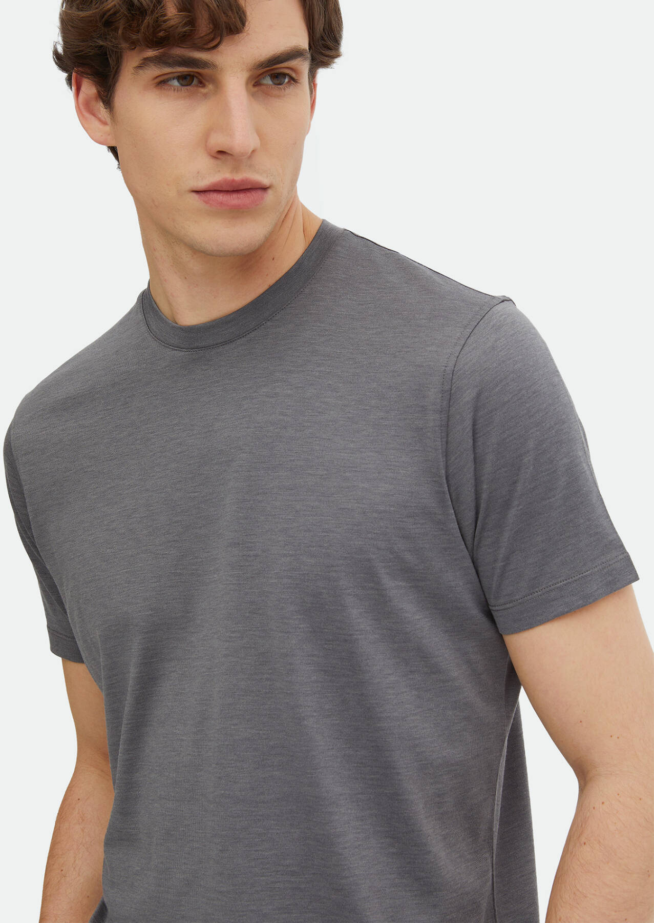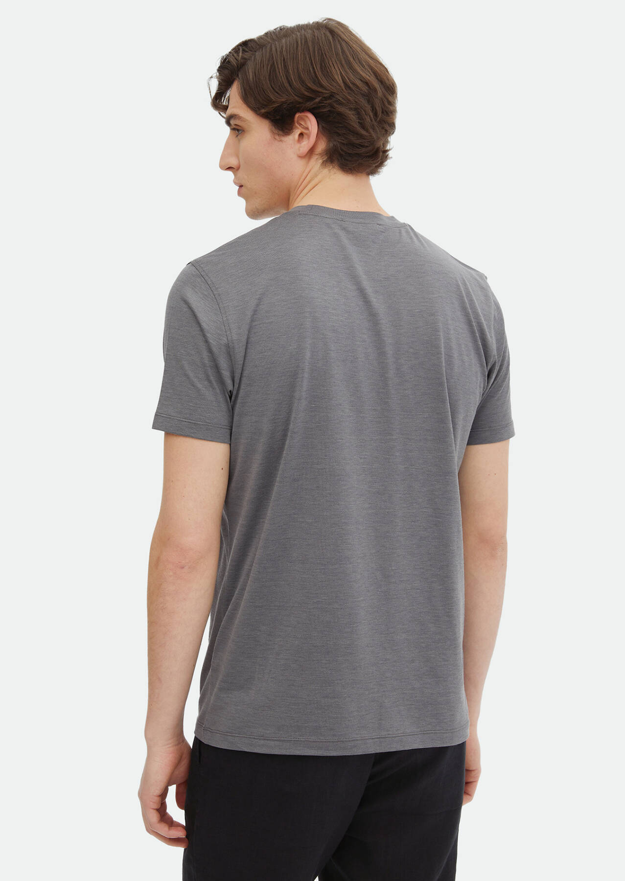 Grey Plain Crew Neck Silk Blended T-Shirt