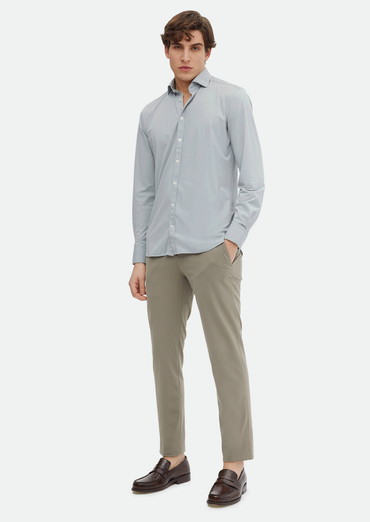 Grey Plain Regular Fit Weaving Classical Shirt