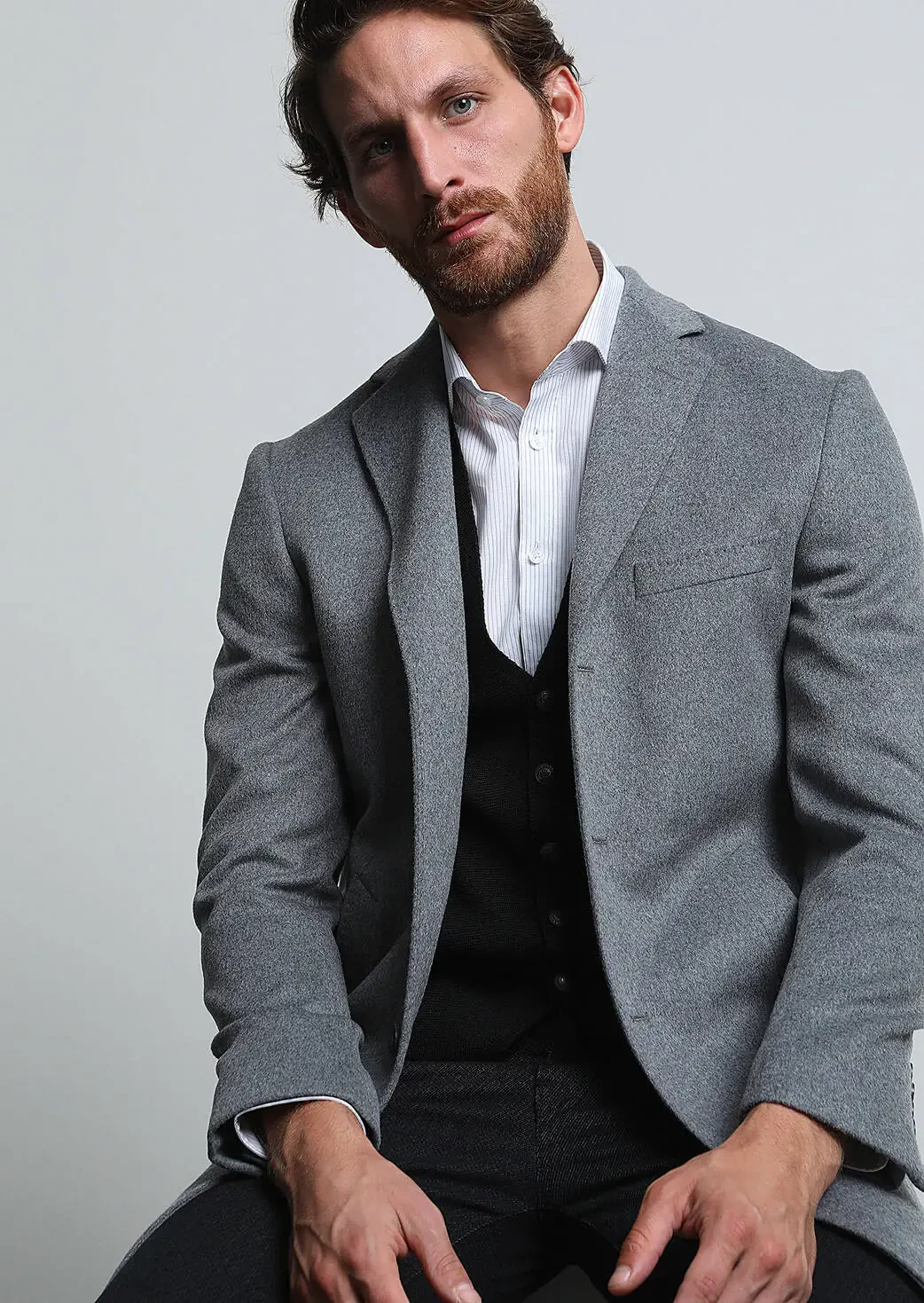 Model: Height: 190 cm, Chest: 94 cm, Waist: 76 cm, Size: 48