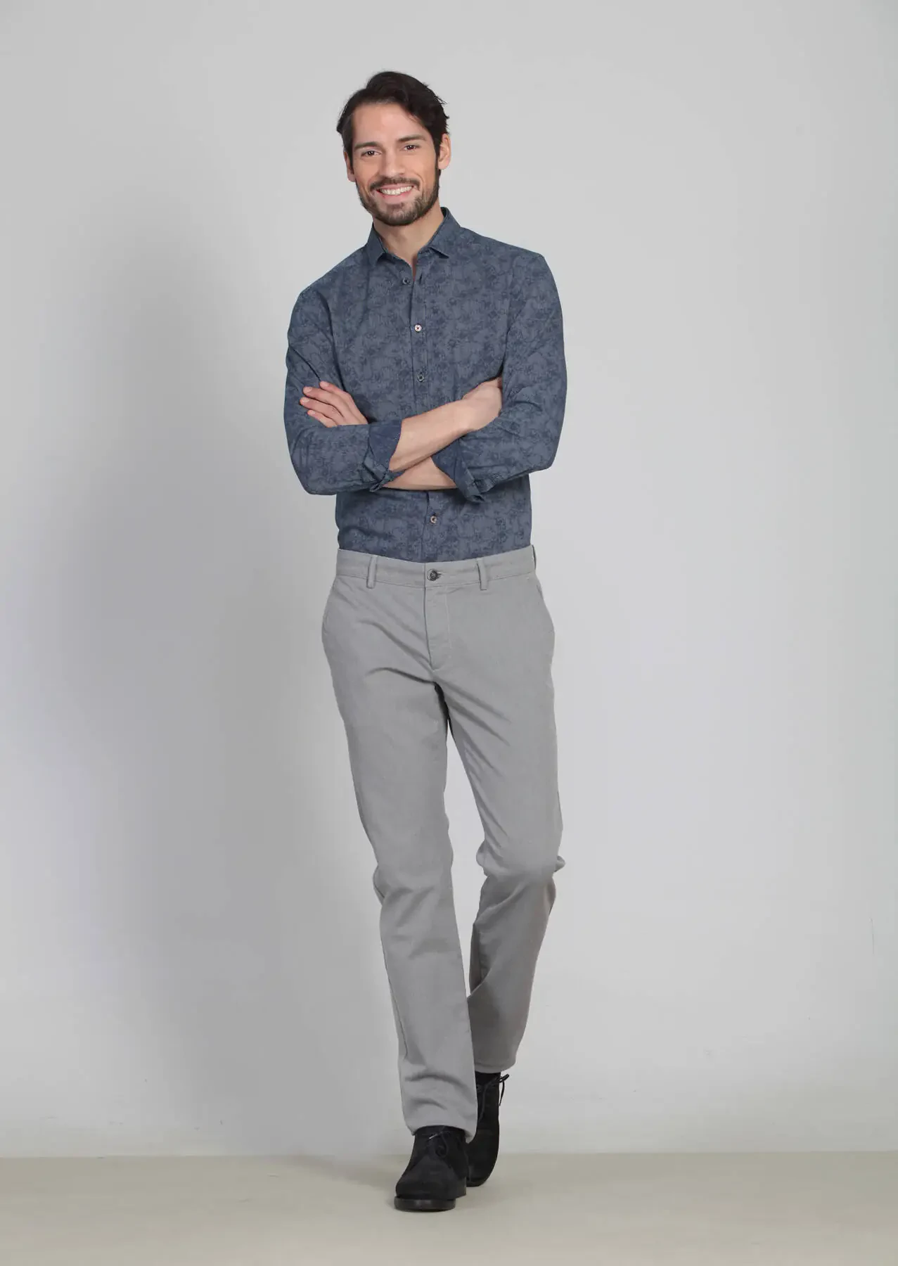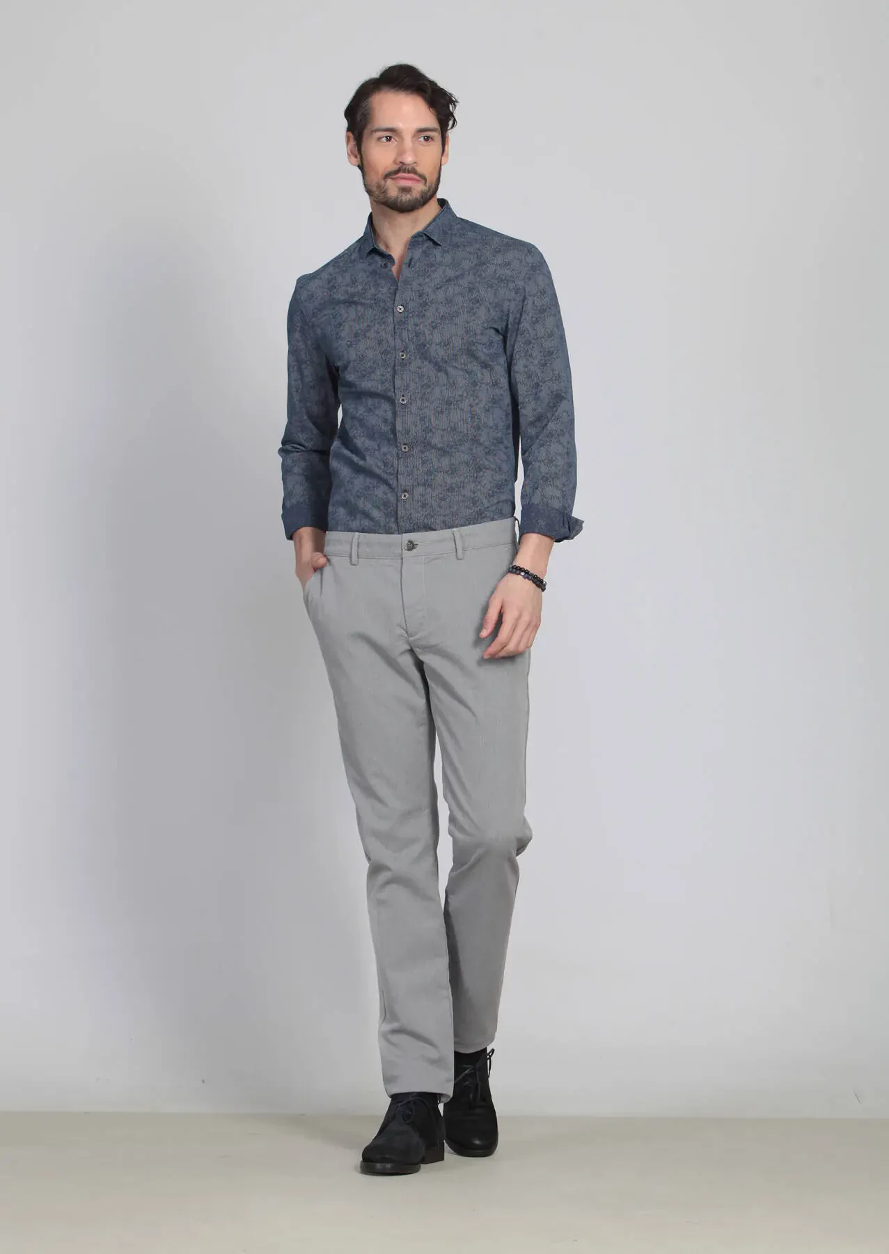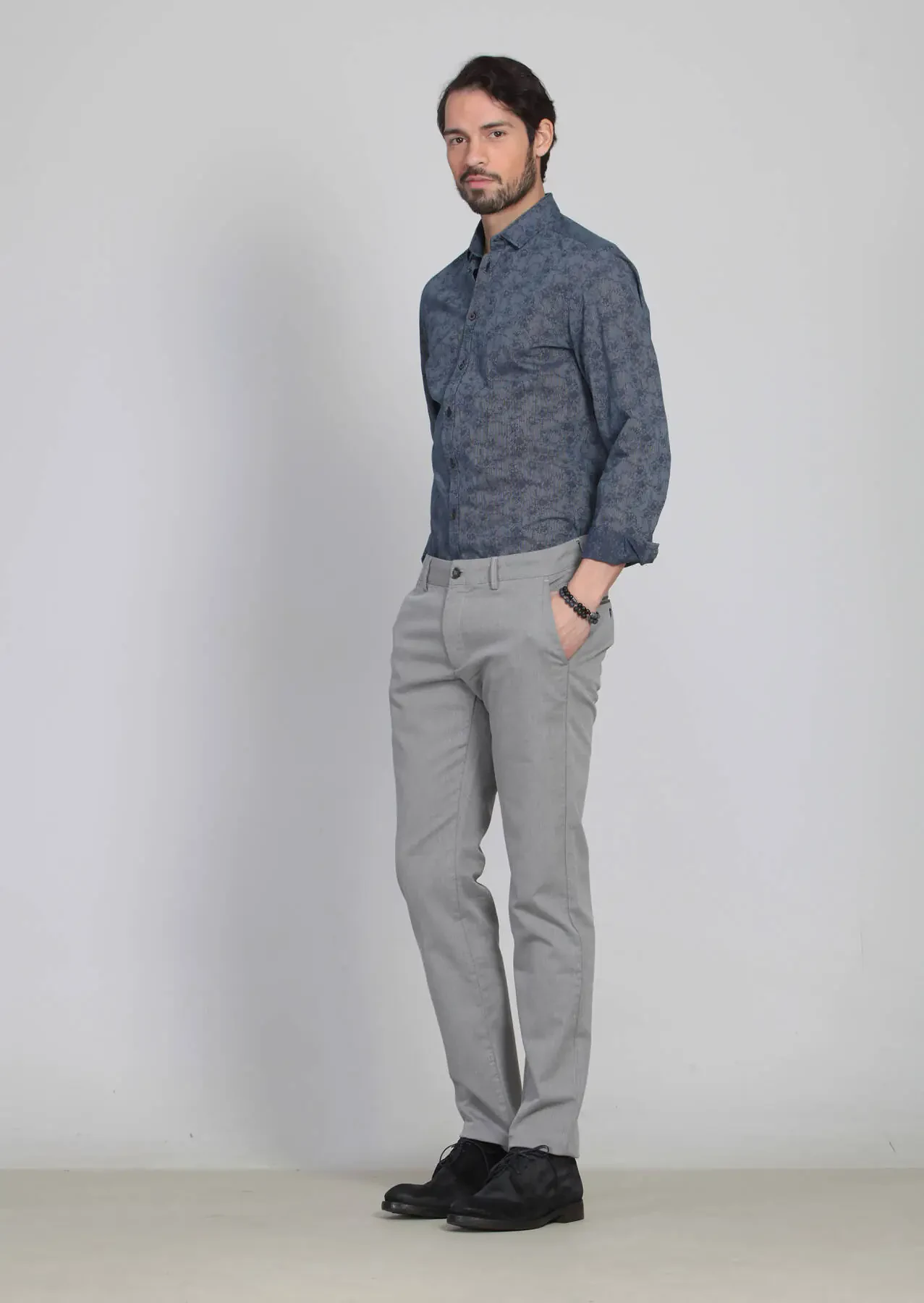 Grey Weaving Regular Fit Casual Cotton Blended Trousers