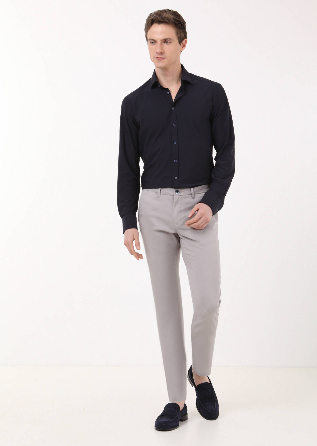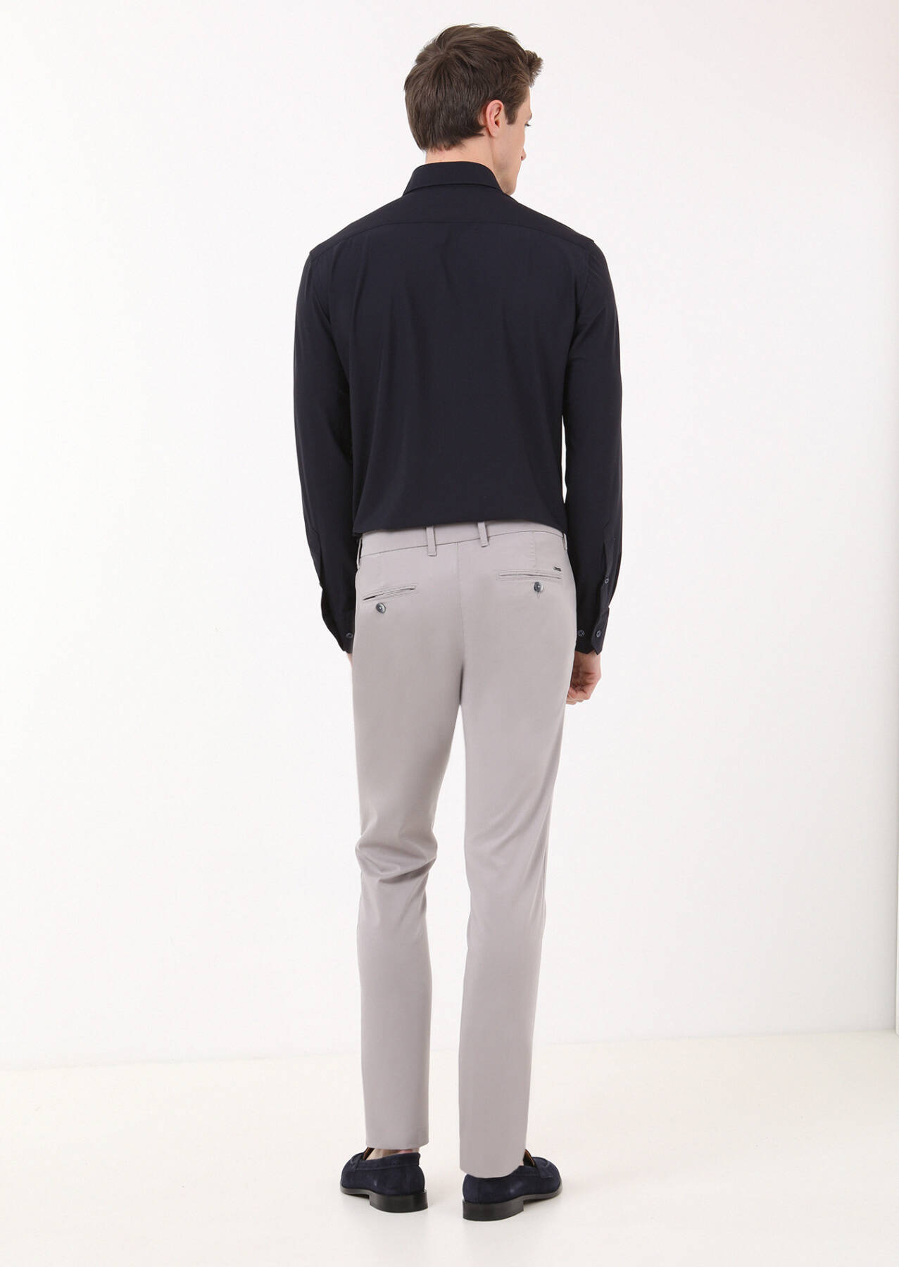 Grey Weaving Regular Fit Casual Trousers
