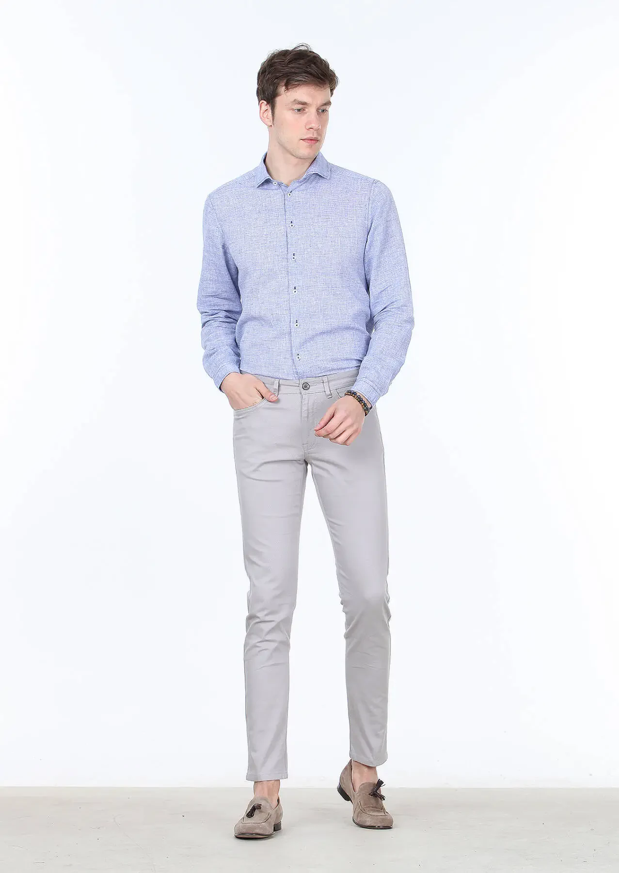 Grey Weaving Slim Fit Casual Cotton Blended Trousers
