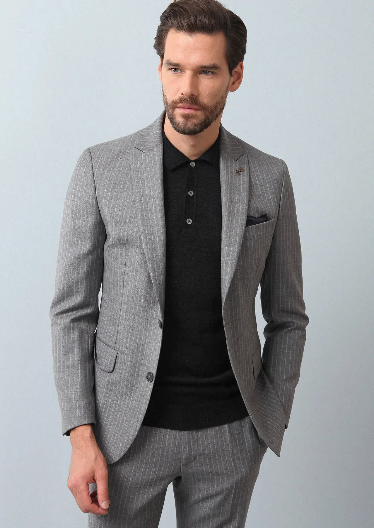 Grey Striped Zeroweight Slim Fit 100% Wool Suit