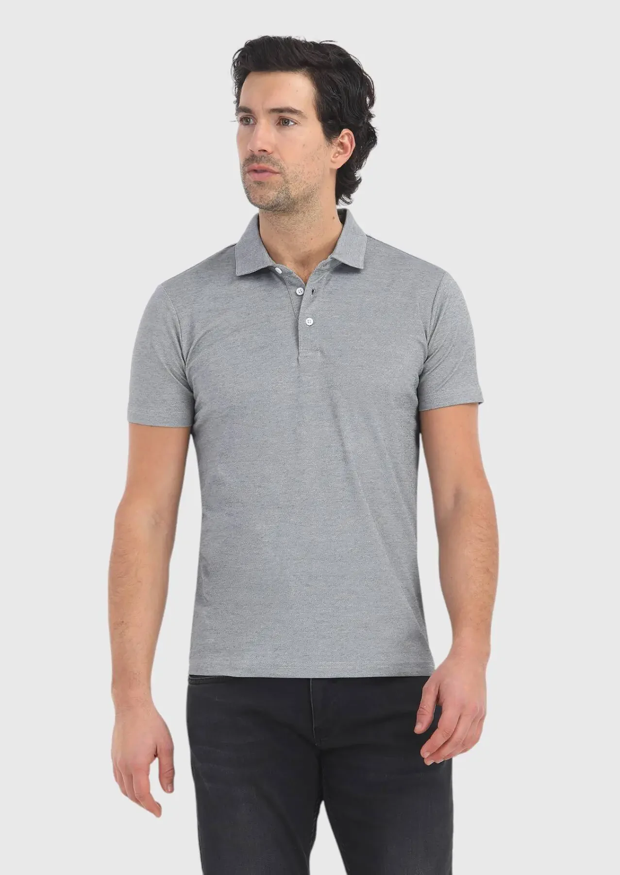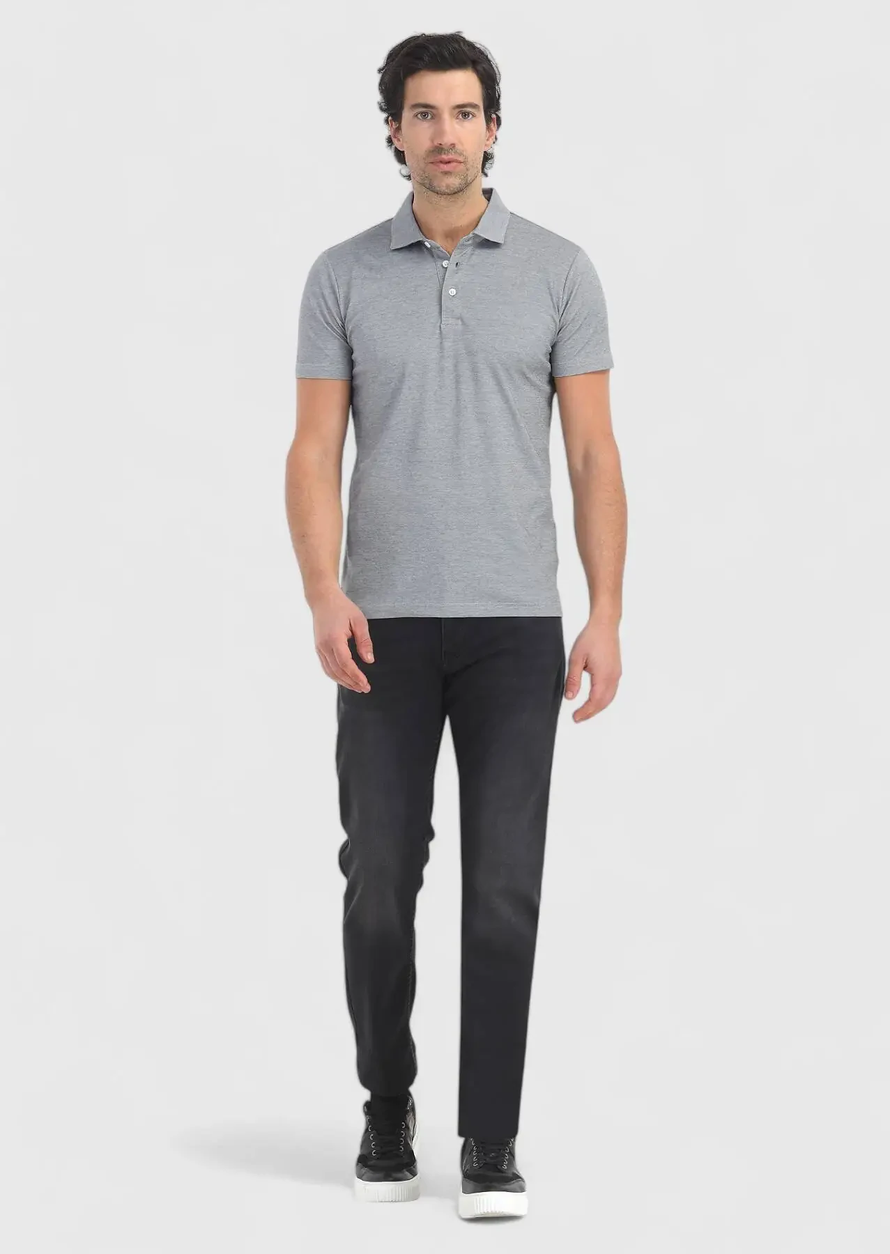 Gri Desenli Polo Yaka Pamuk Karışımlı T-Shirt