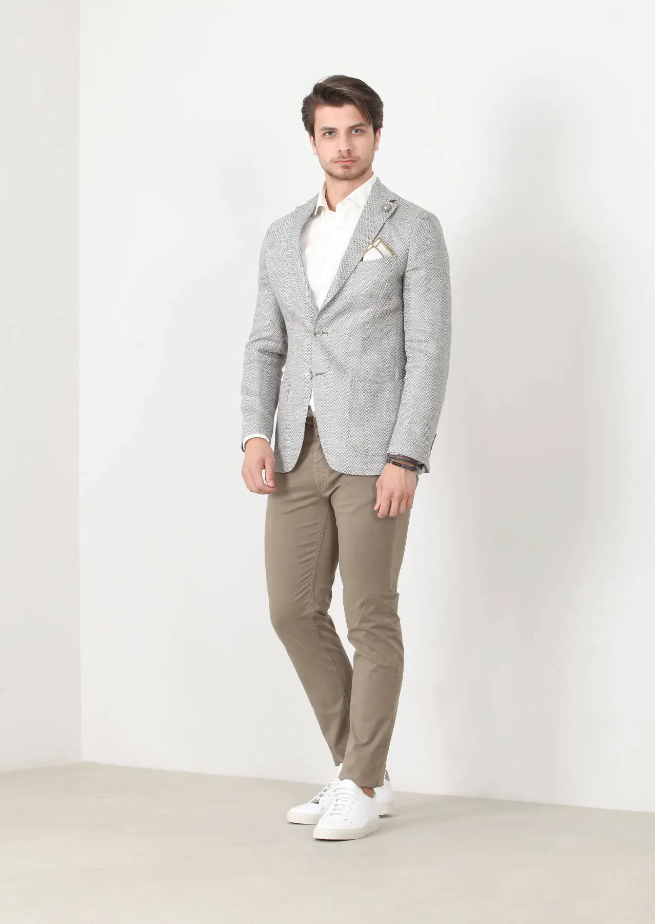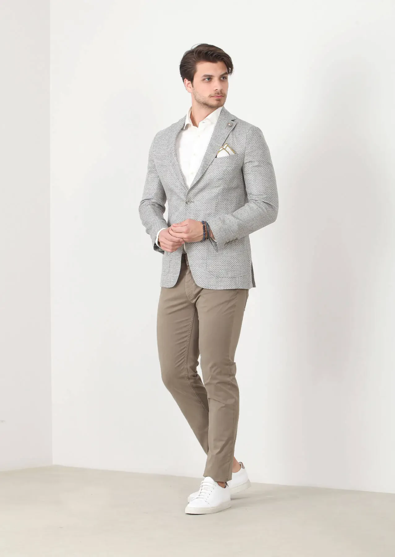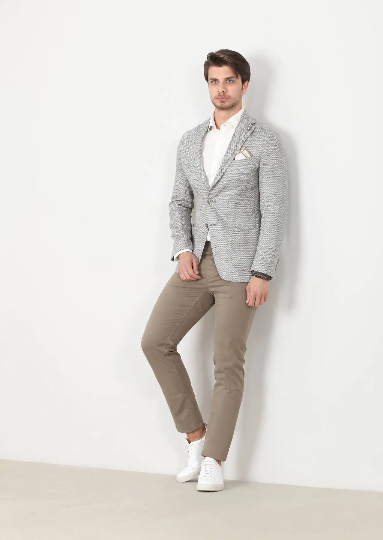 Gri Desenli Shirt Shoulder-slim Fit %100 Keten Ceket