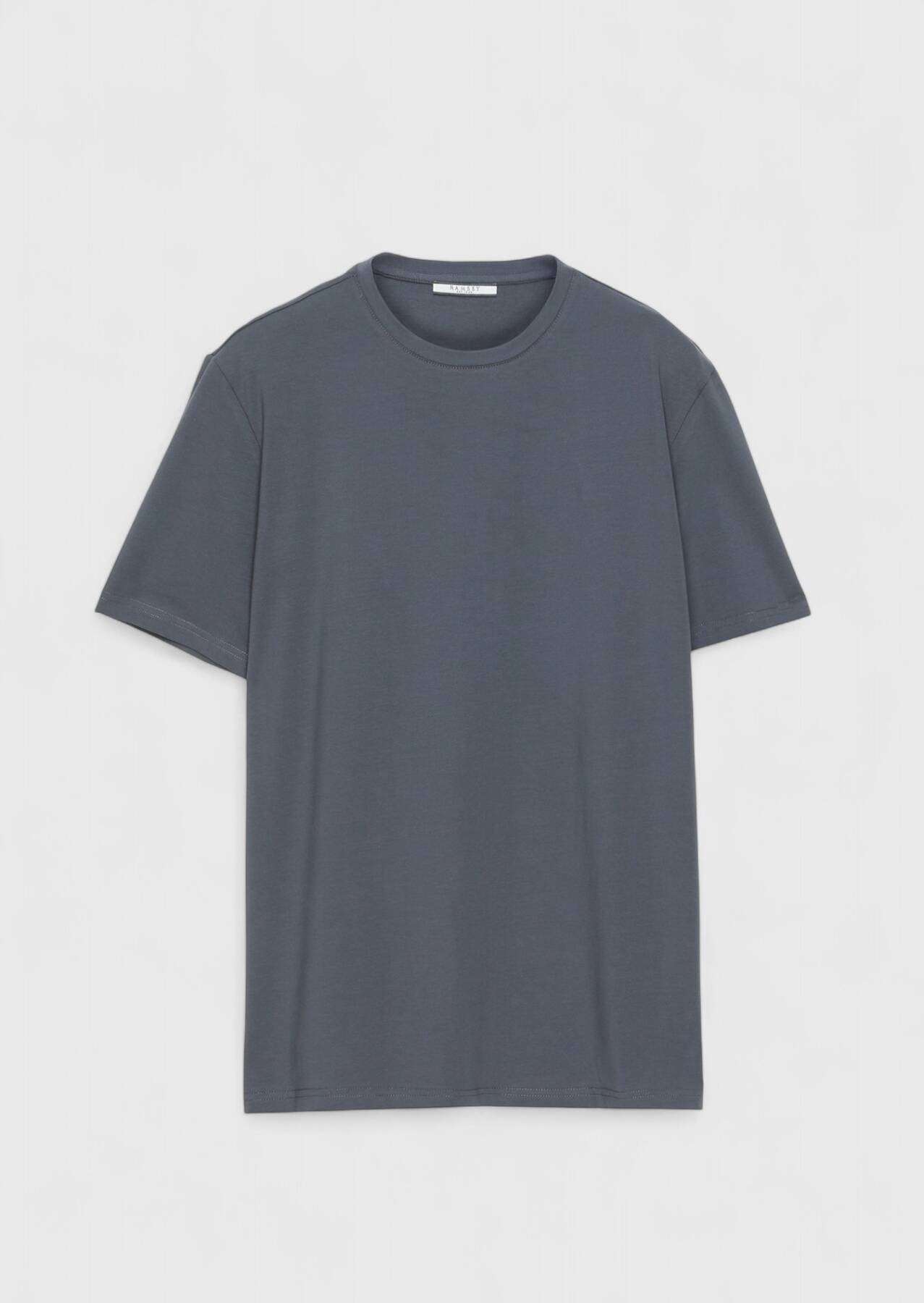 Gri Düz Bisiklet Yaka Pamuk Karışımlı T-Shirt