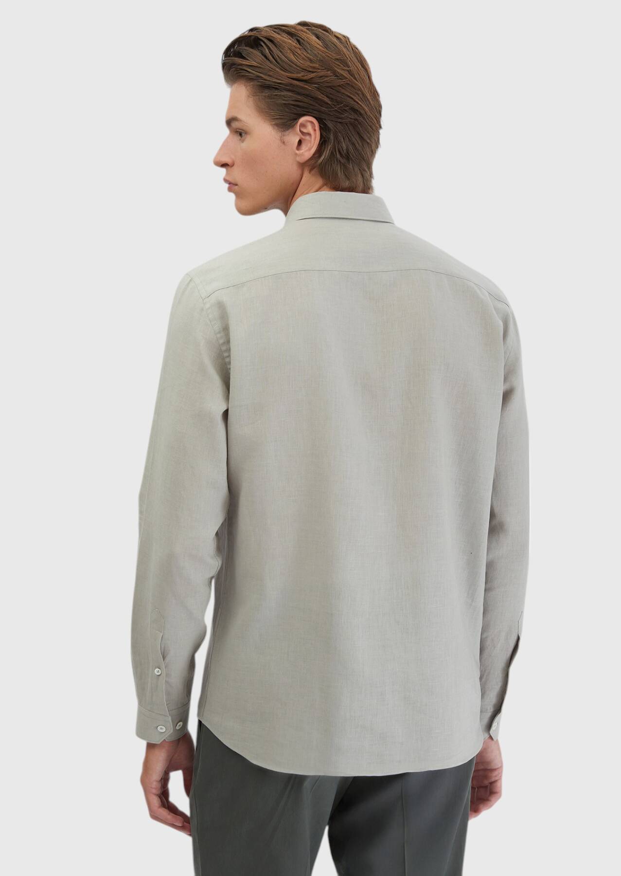 Gri Düz Casual Fit Uzun Dokuma Casual Pamuk Karışımlı Gömlek