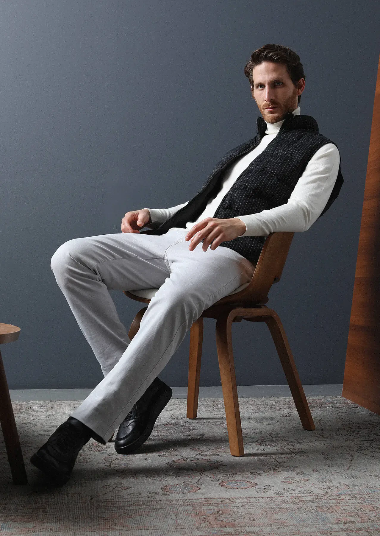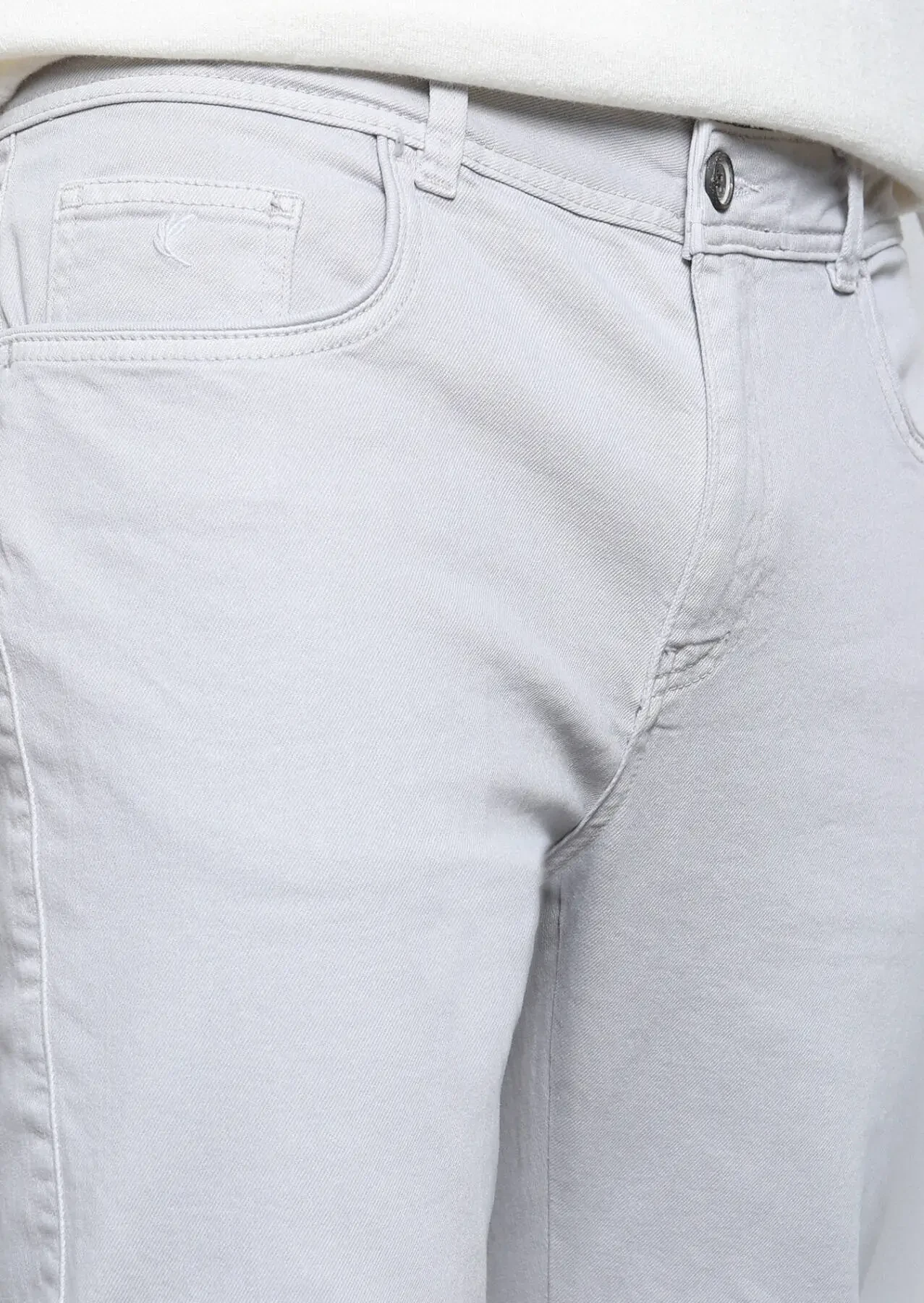 Grey Weaving Slim Fit Casual Cotton Blended Trousers