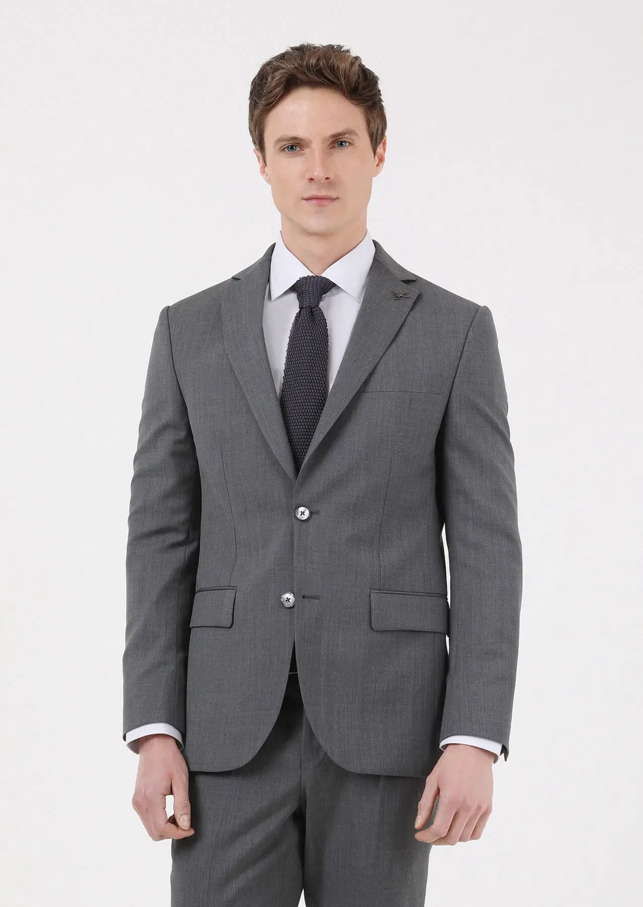 Gri Düz Modern Fit %100 Yün Takım Elbise