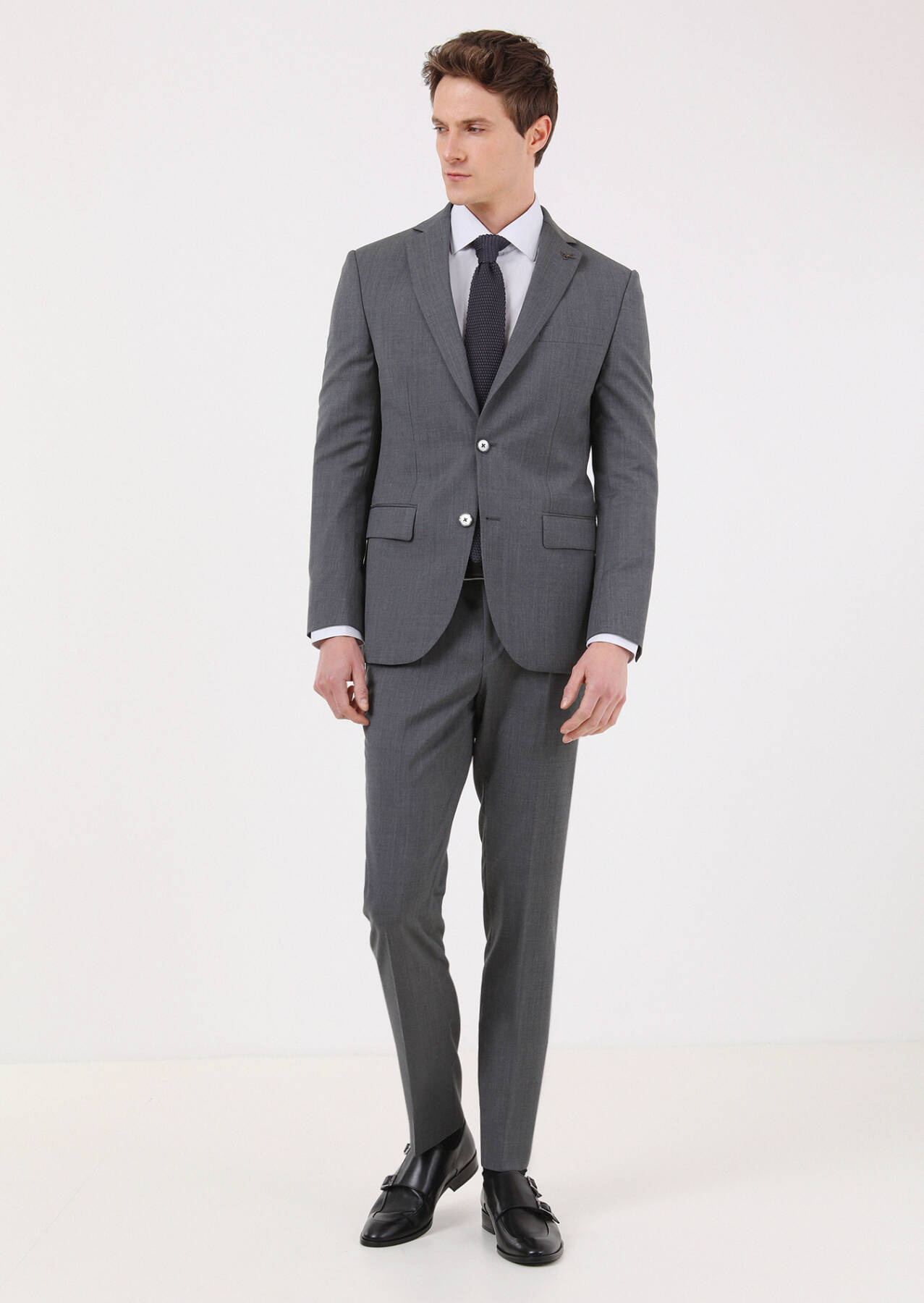 Gri Düz Modern Fit %100 Yün Takım Elbise