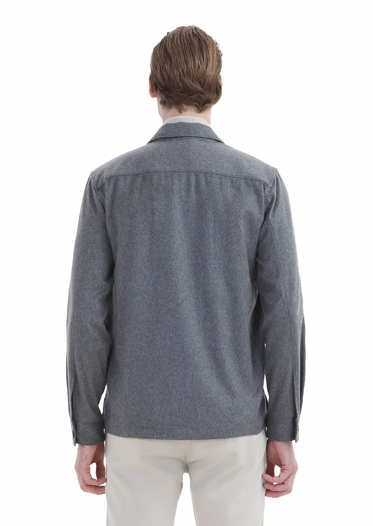 %100 kaşmir kumaşla tasarlanan, gömlek yaka, önü ve manşetleri düğmeli, ön cepli, gri regular fit overshirt. Beden hatlarının belirgin hale getirirken, rahat şekilde hareket etmeyi sağlayan form. Modern görünümü destekleyen, şıklığı ve konforu buluşturan kesim. Saf ve değerli dokusuyla üst seviye sıcaklık.