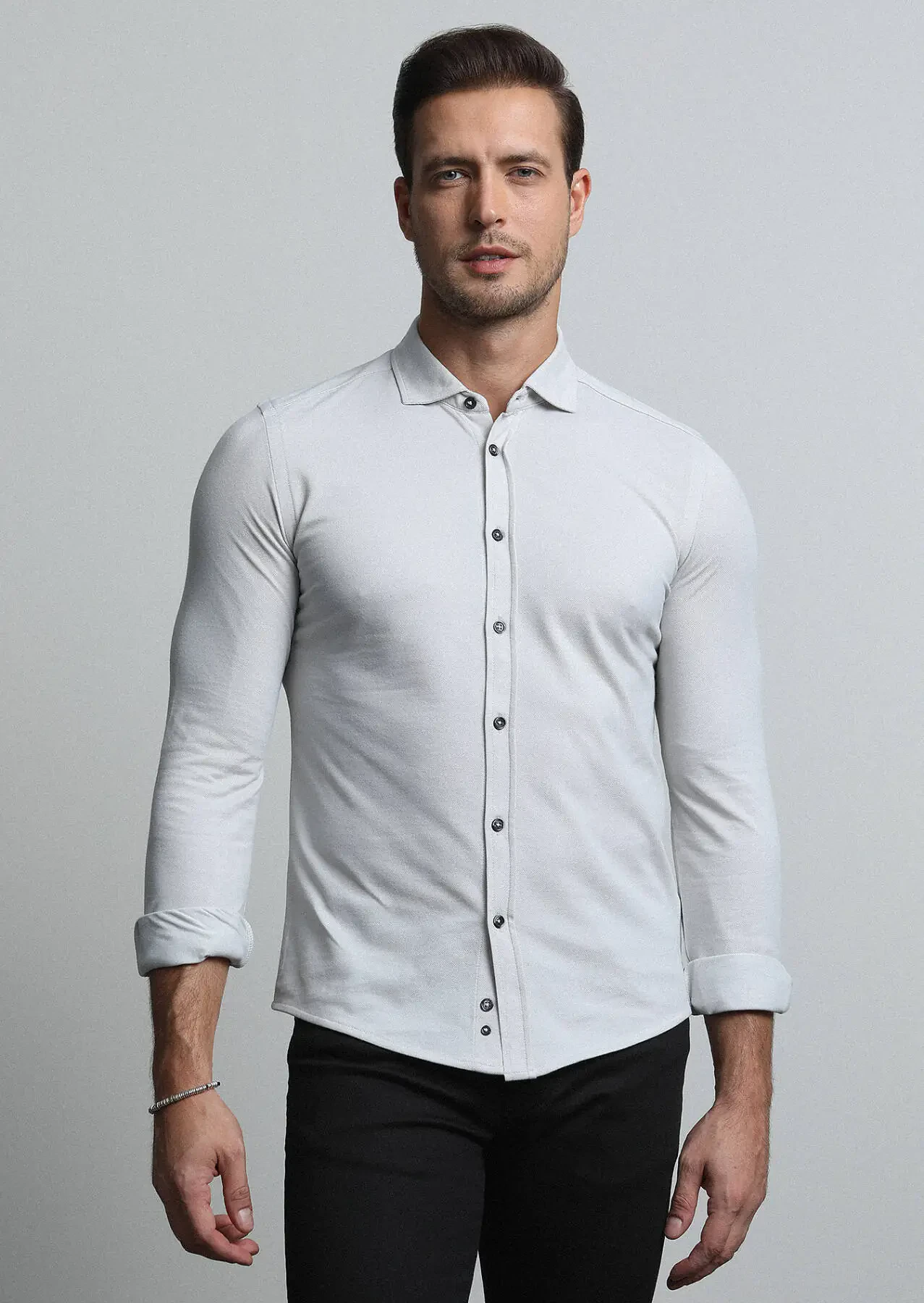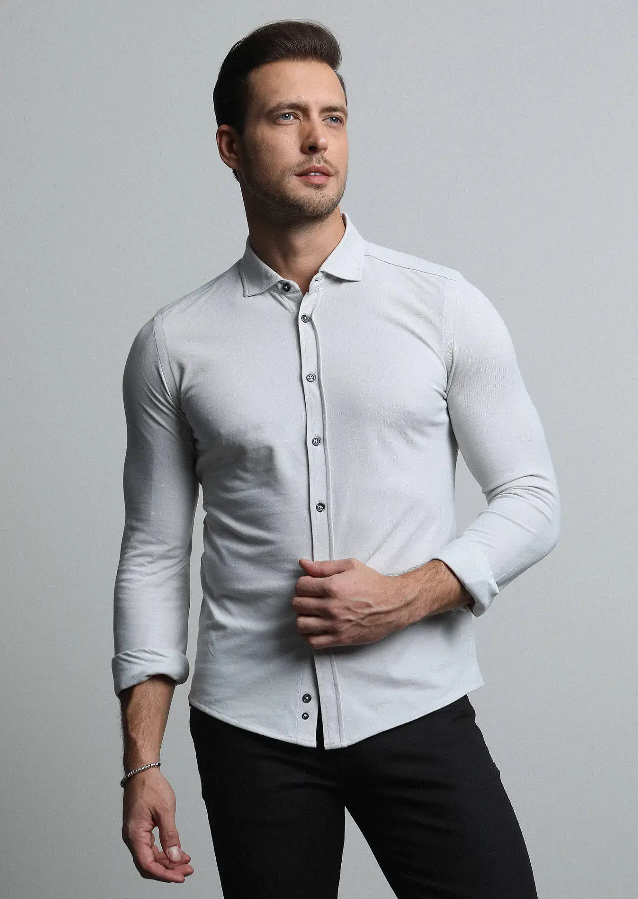 Gri Fitted Fit Casual Pamuk Karışımlı Gömlek