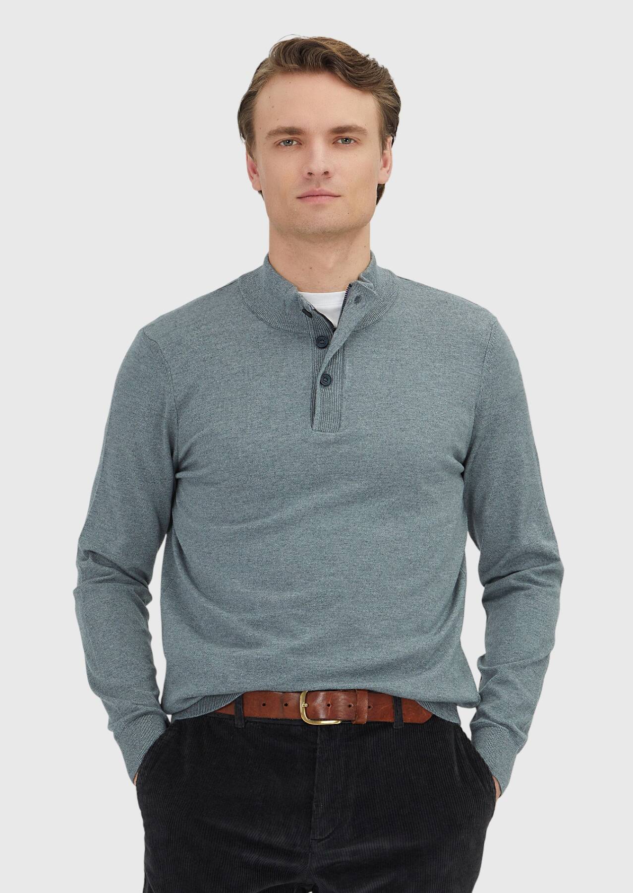 Gri Polo Yaka Düz Örgü Triko Kazak