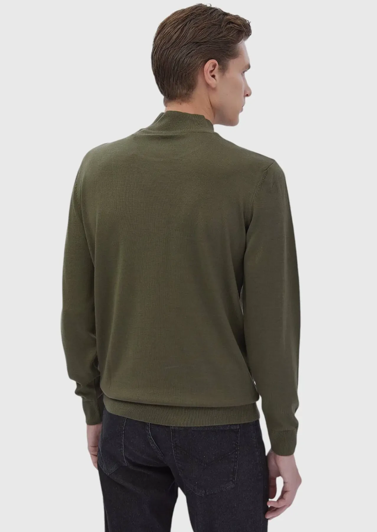 Haki Bato Yaka Düz Örgü Yün Karışımlı Triko Kazak