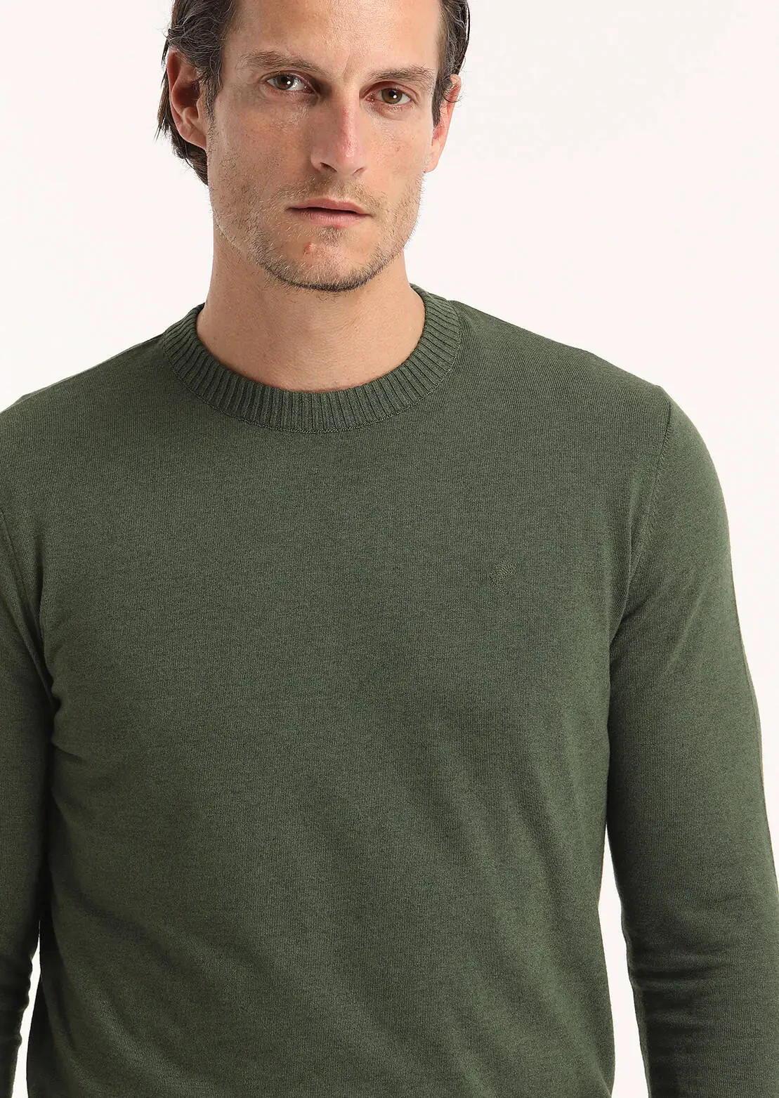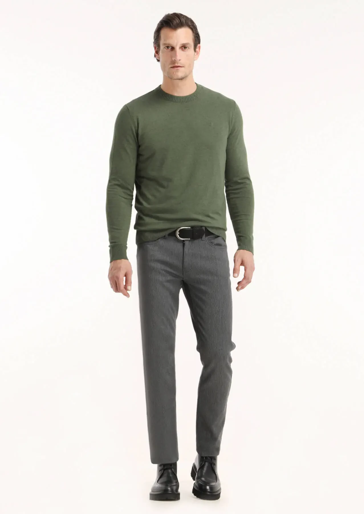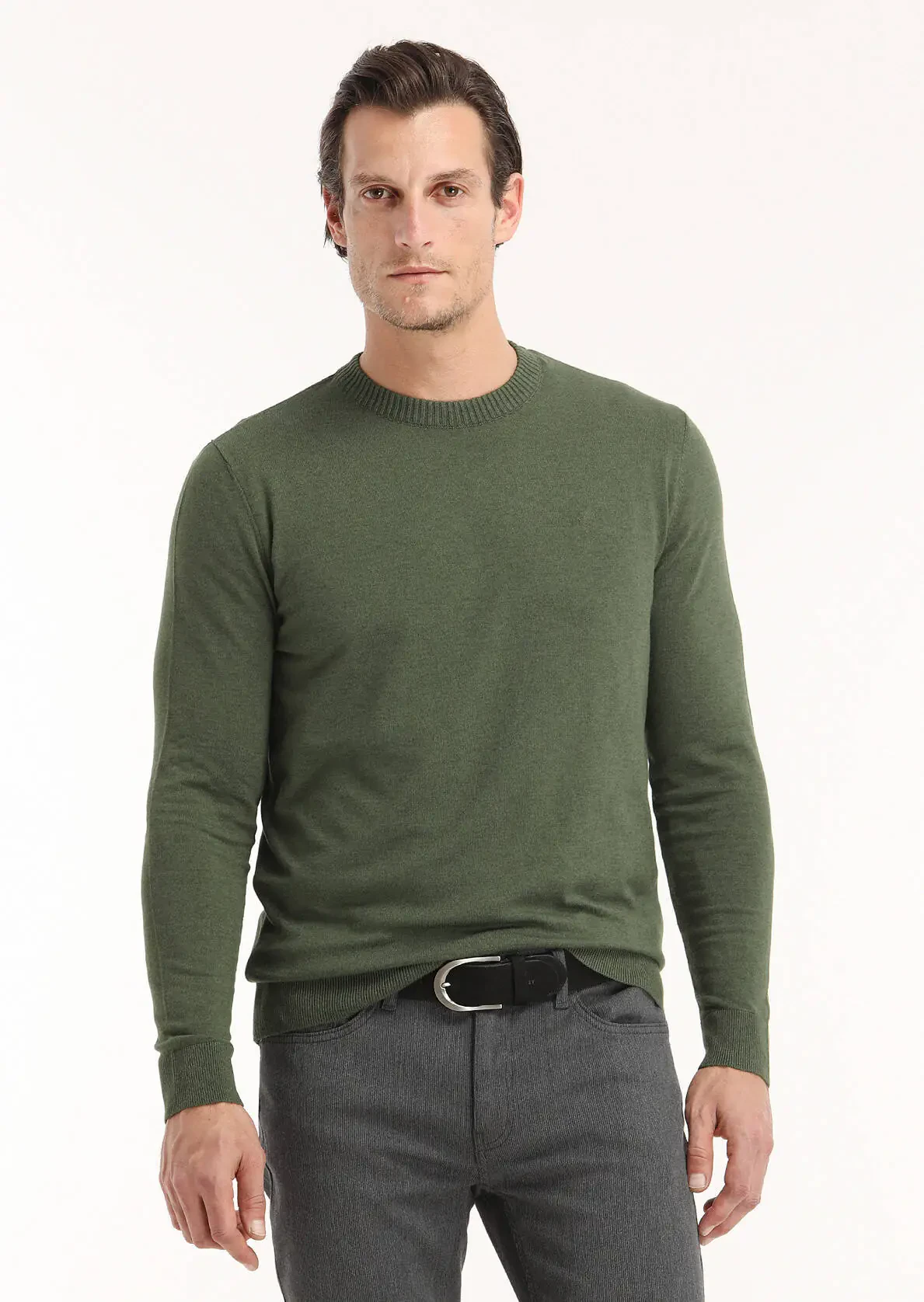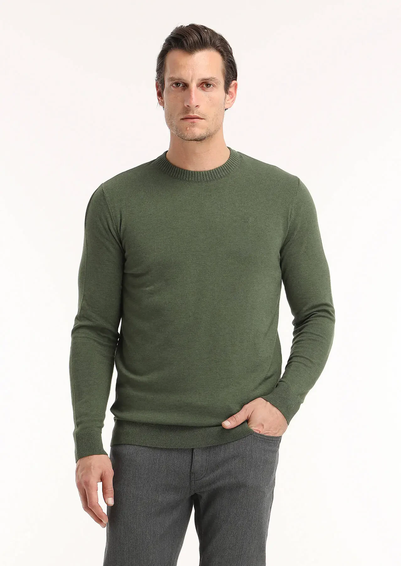 Haki Bisiklet Yaka Düz Örgü Yün Karışımlı Triko Kazak