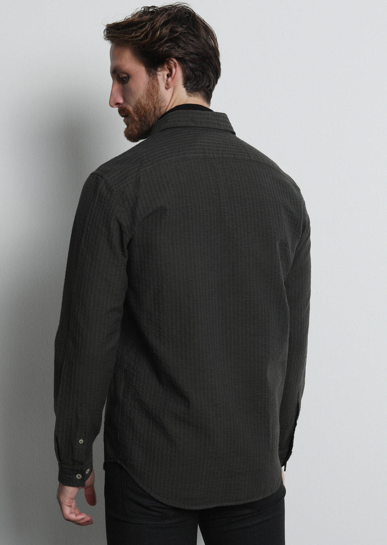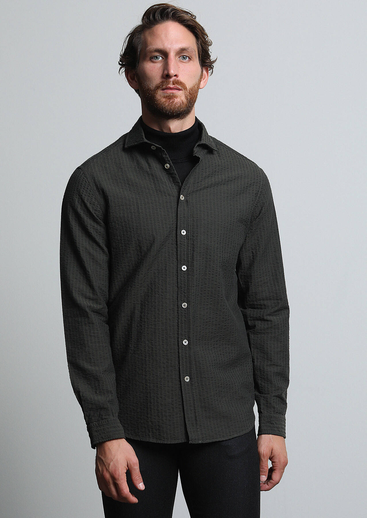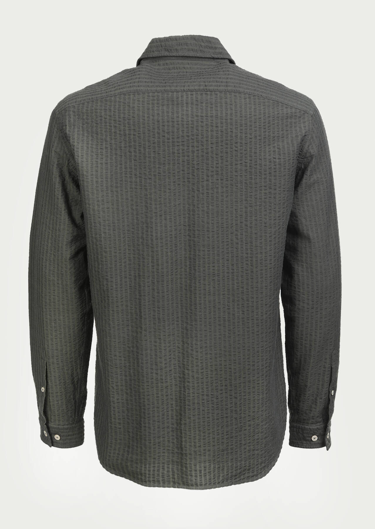 Haki Çizgili Regular Fit Uzun Dokuma Casual %100 Pamuk Gömlek