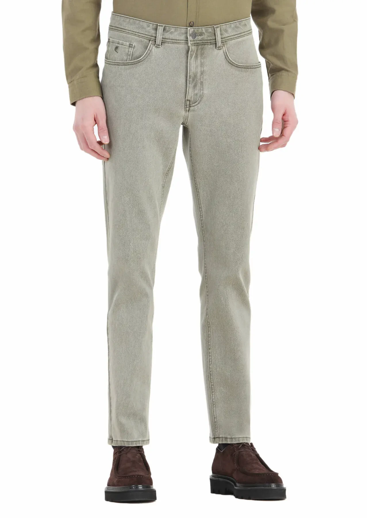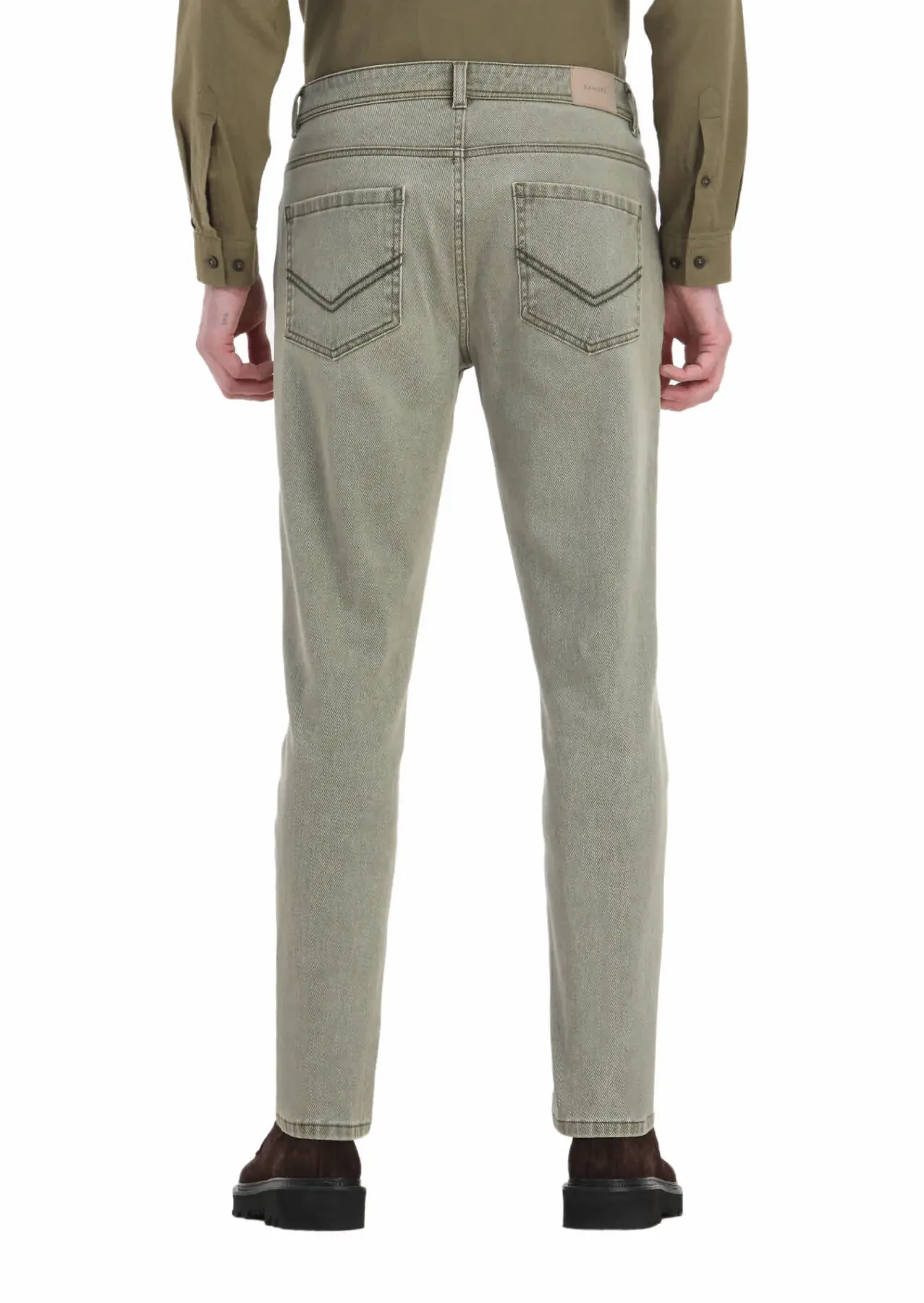 Haki Desenli Dokuma Slim Fit Casual Pamuk Karışımlı Pantolon
