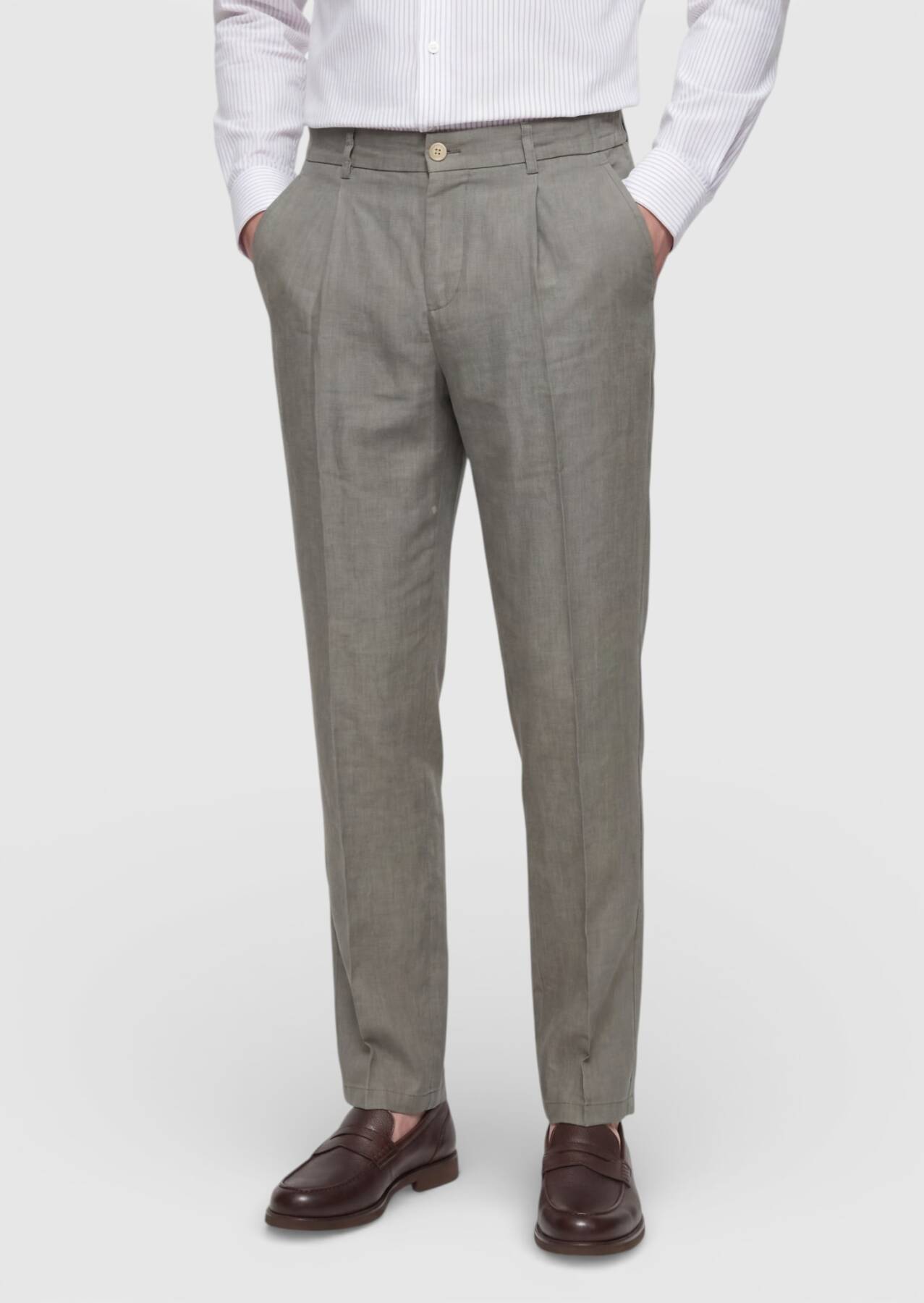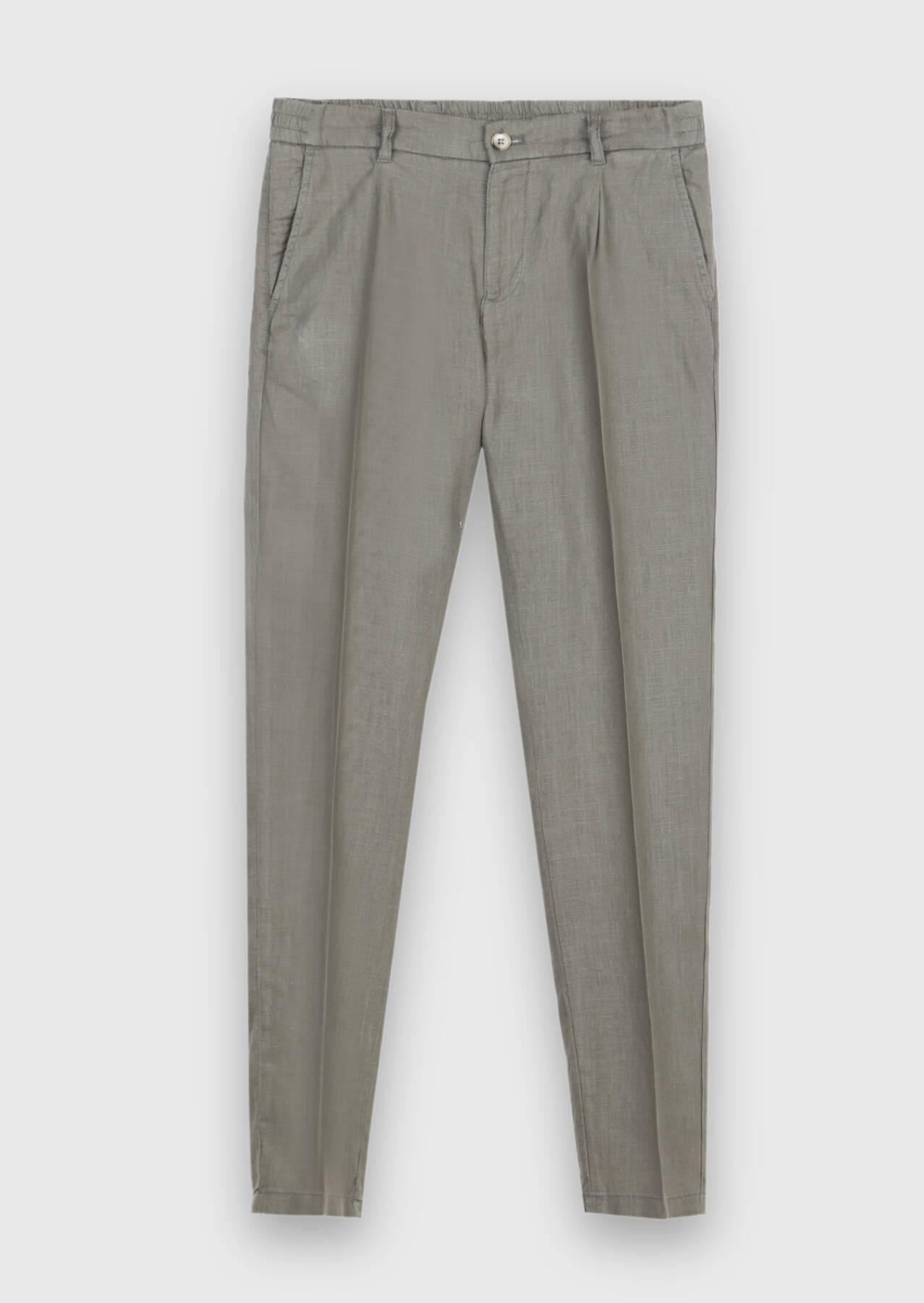Haki Düz Dokuma Jogging Fit Casual %100 Keten Pantolon