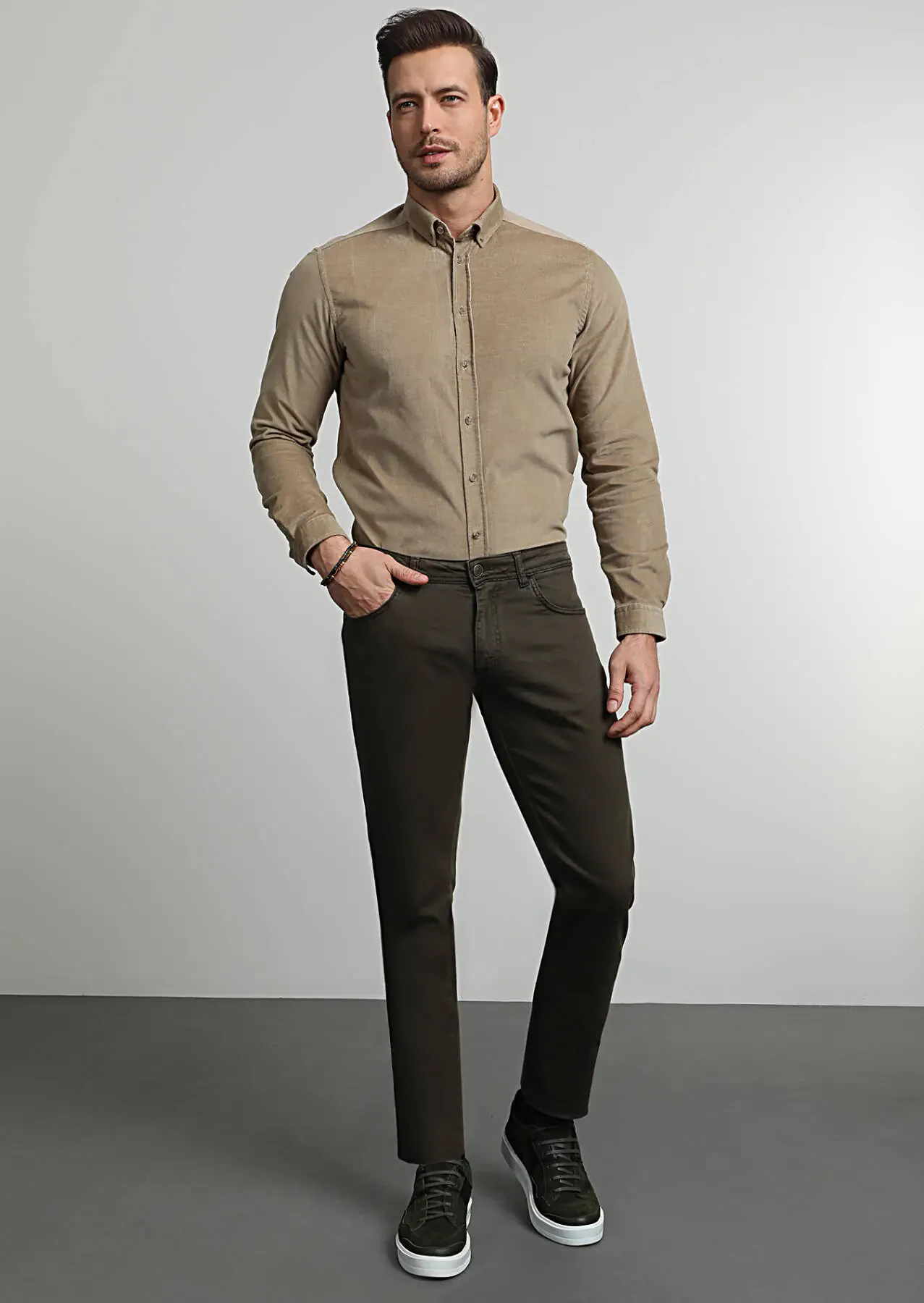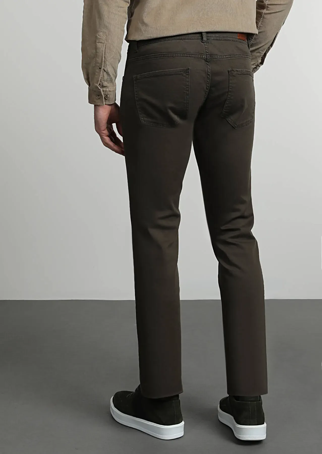 Khaki Weaving Slim Fit Casual Cotton Blended Trousers