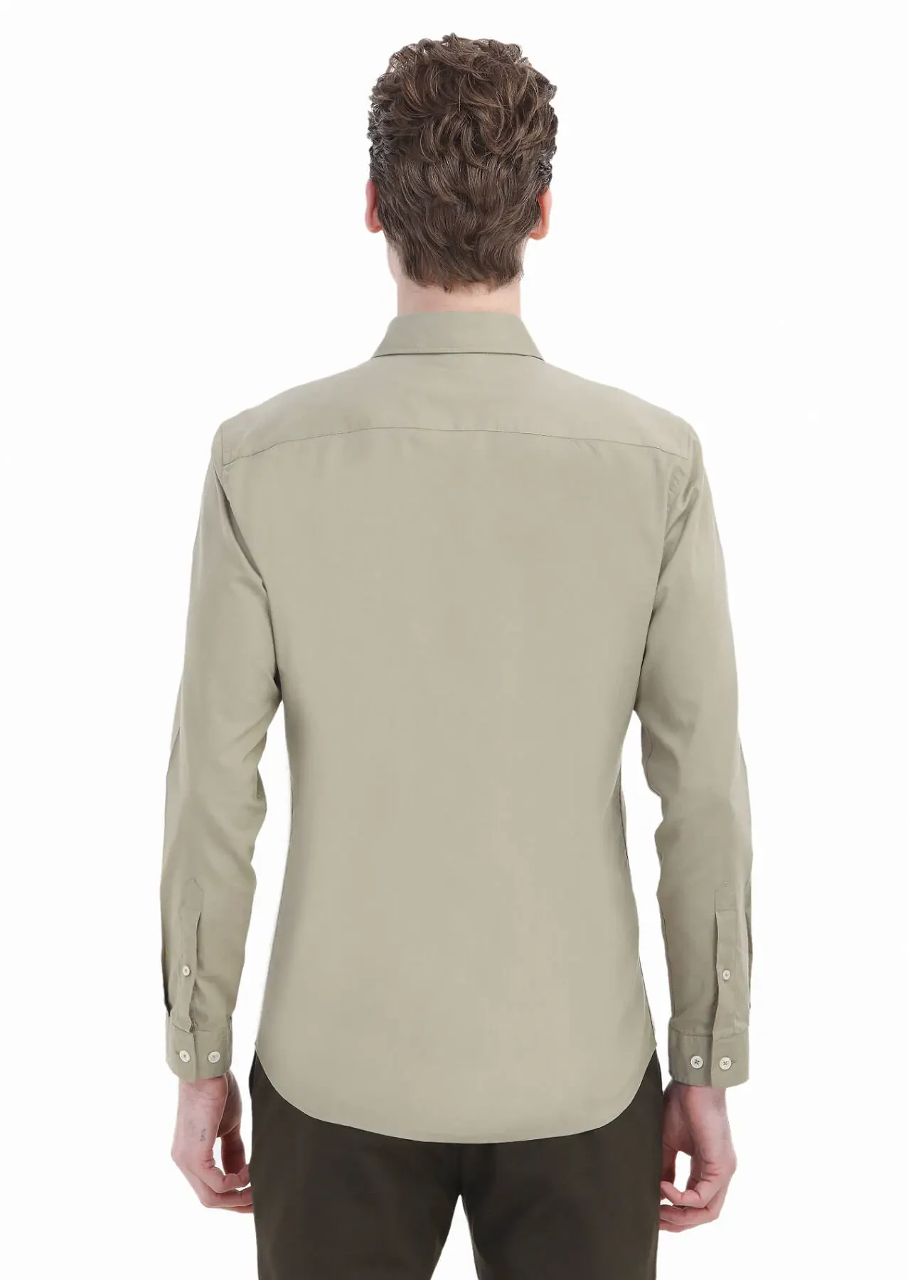 Haki Düz Regular Fit Dokuma Casual Pamuk Karışımlı Gömlek