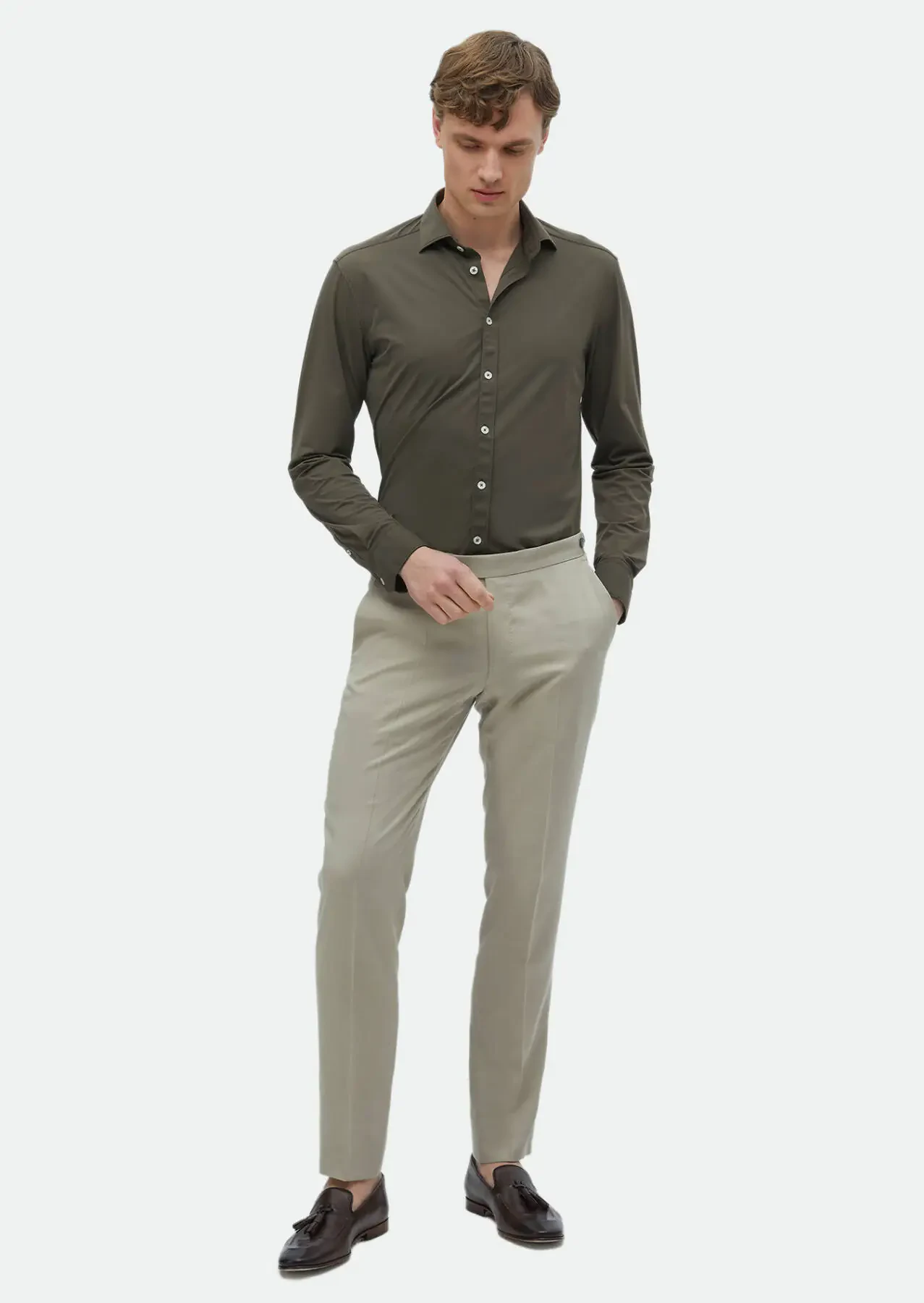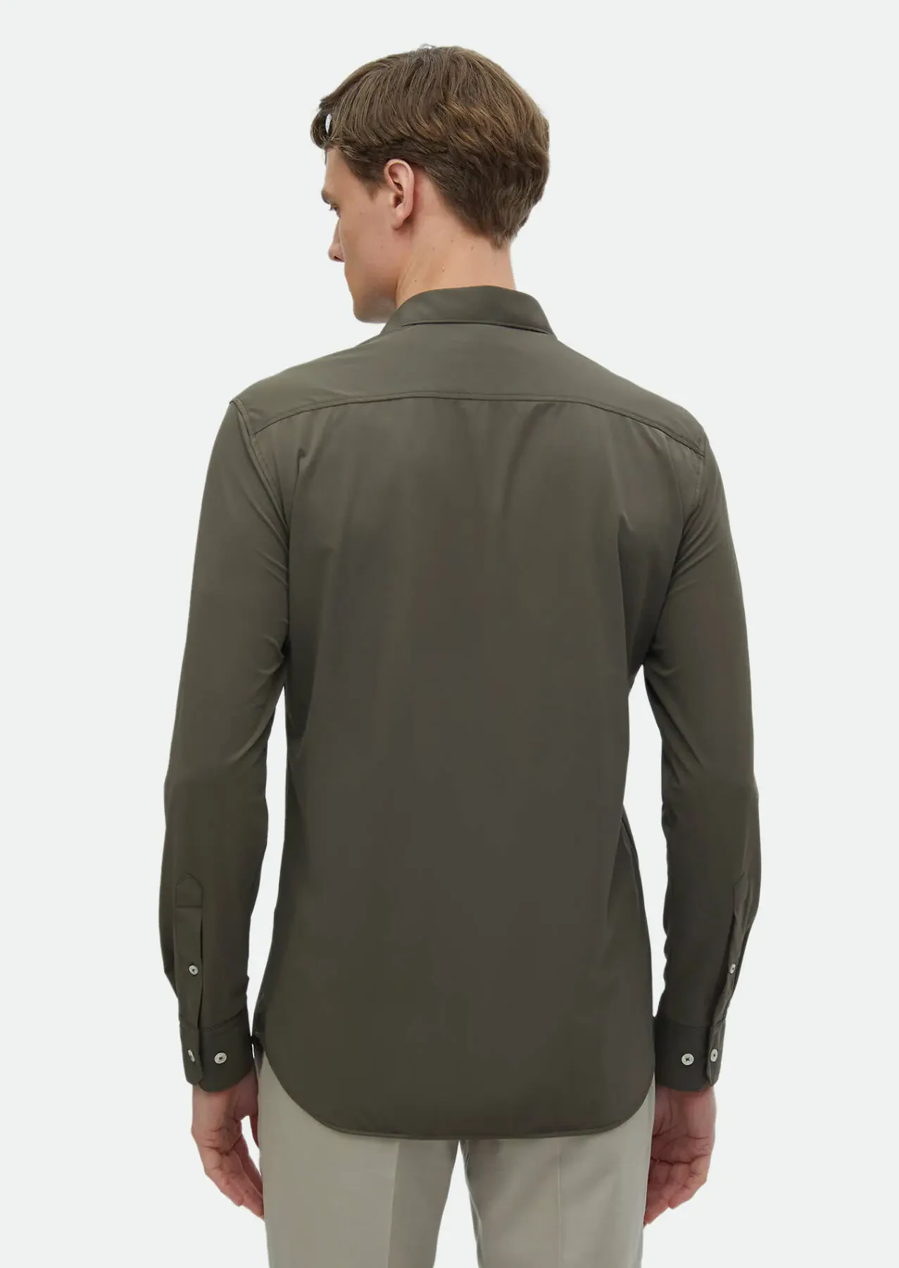 Haki Düz Regular Fit Dokuma Klasik Gömlek
