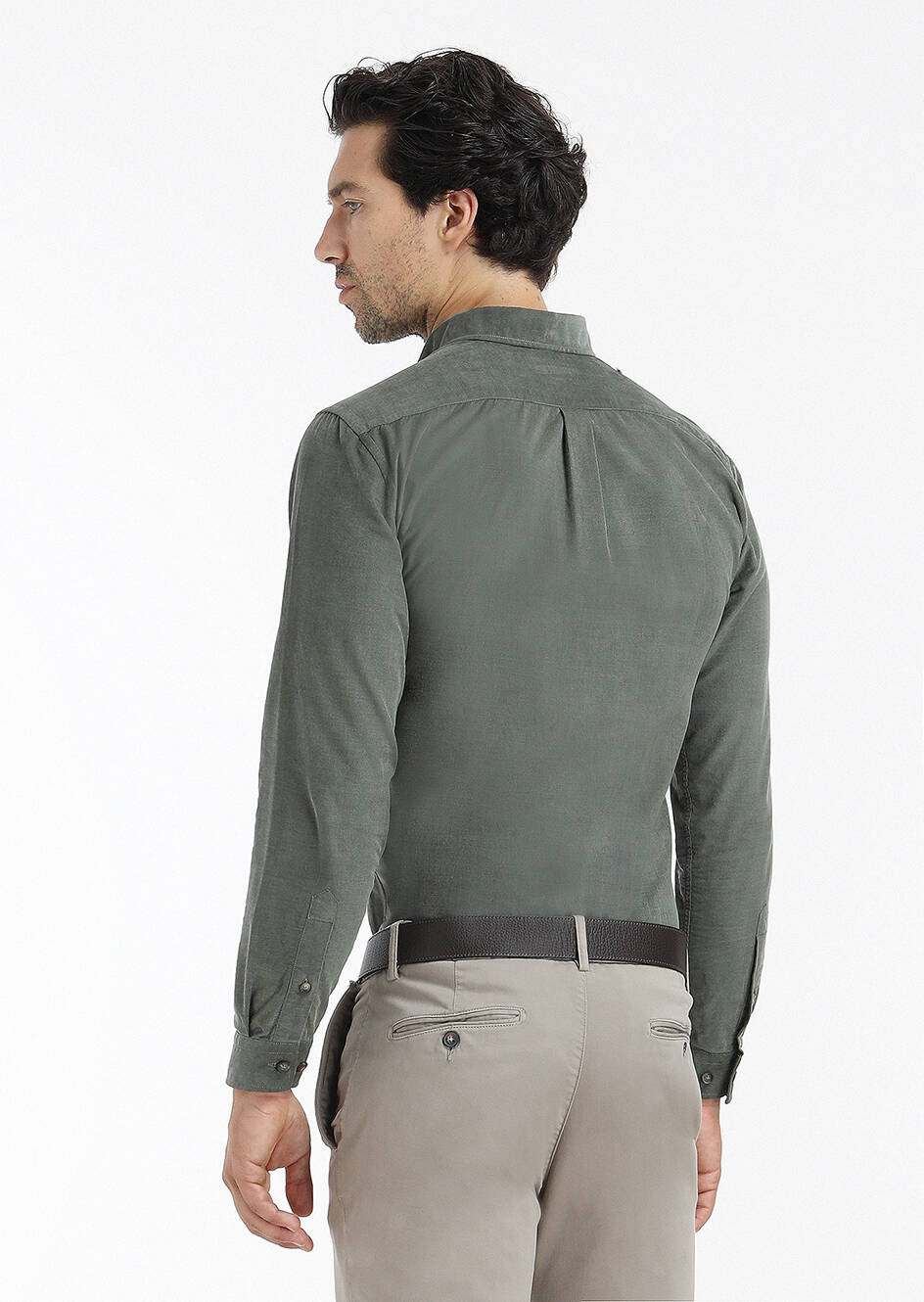 Haki Fitilli Regular Fit Uzun Dokuma Kadife Casual %100 Pamuk Gömlek