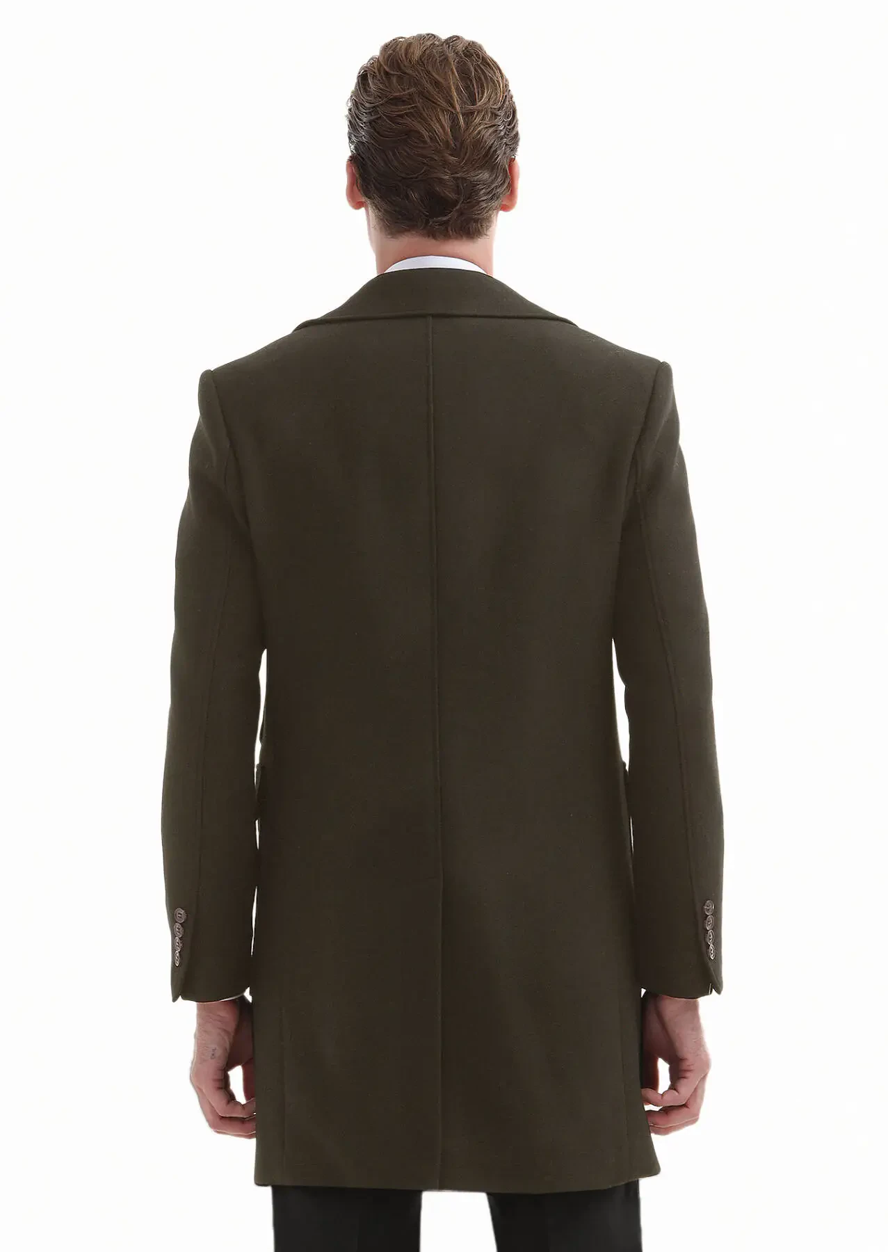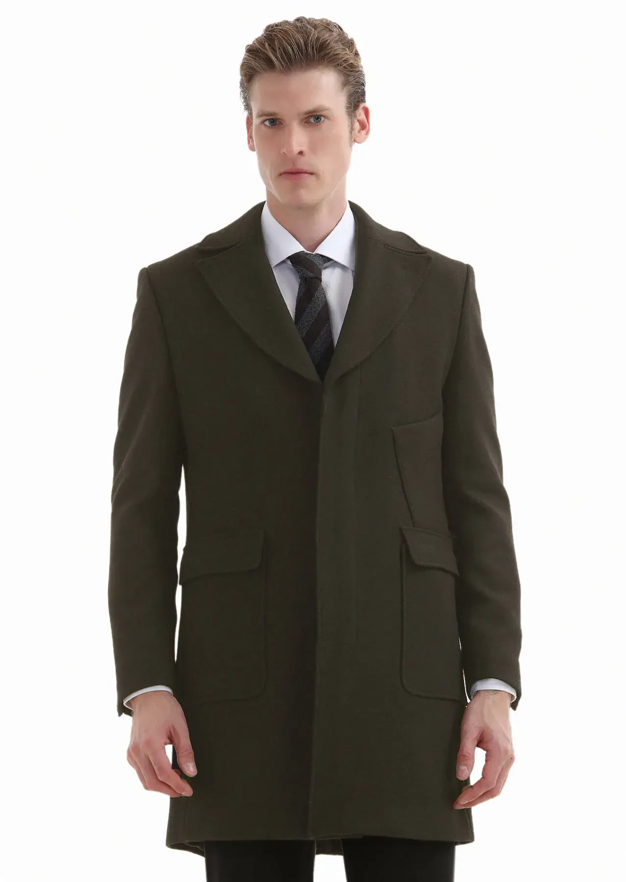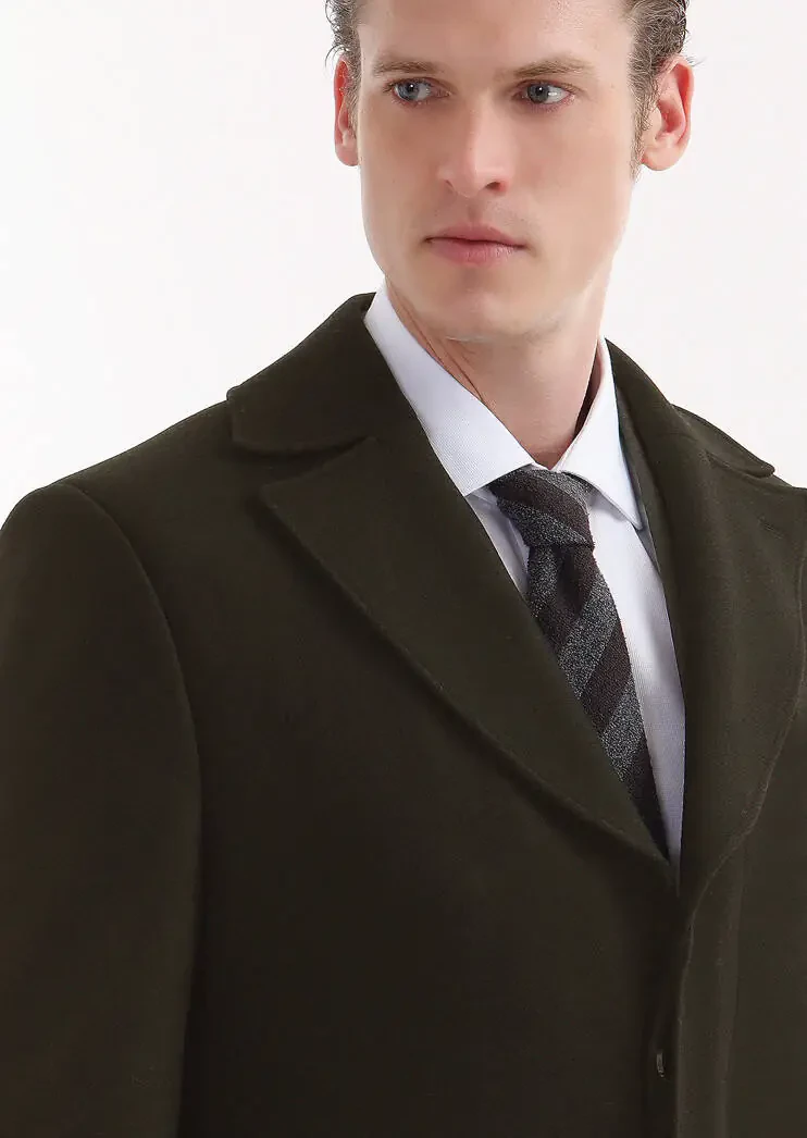 Haki Regular Fit Kruvaze Yaka Casual Dokuma Palto