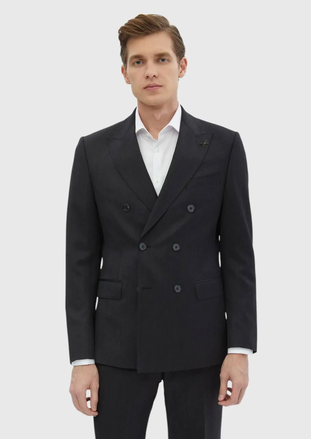 Model: Height: 186 cm, Chest: 94 cm, Waist: 73 cm, Size: 48