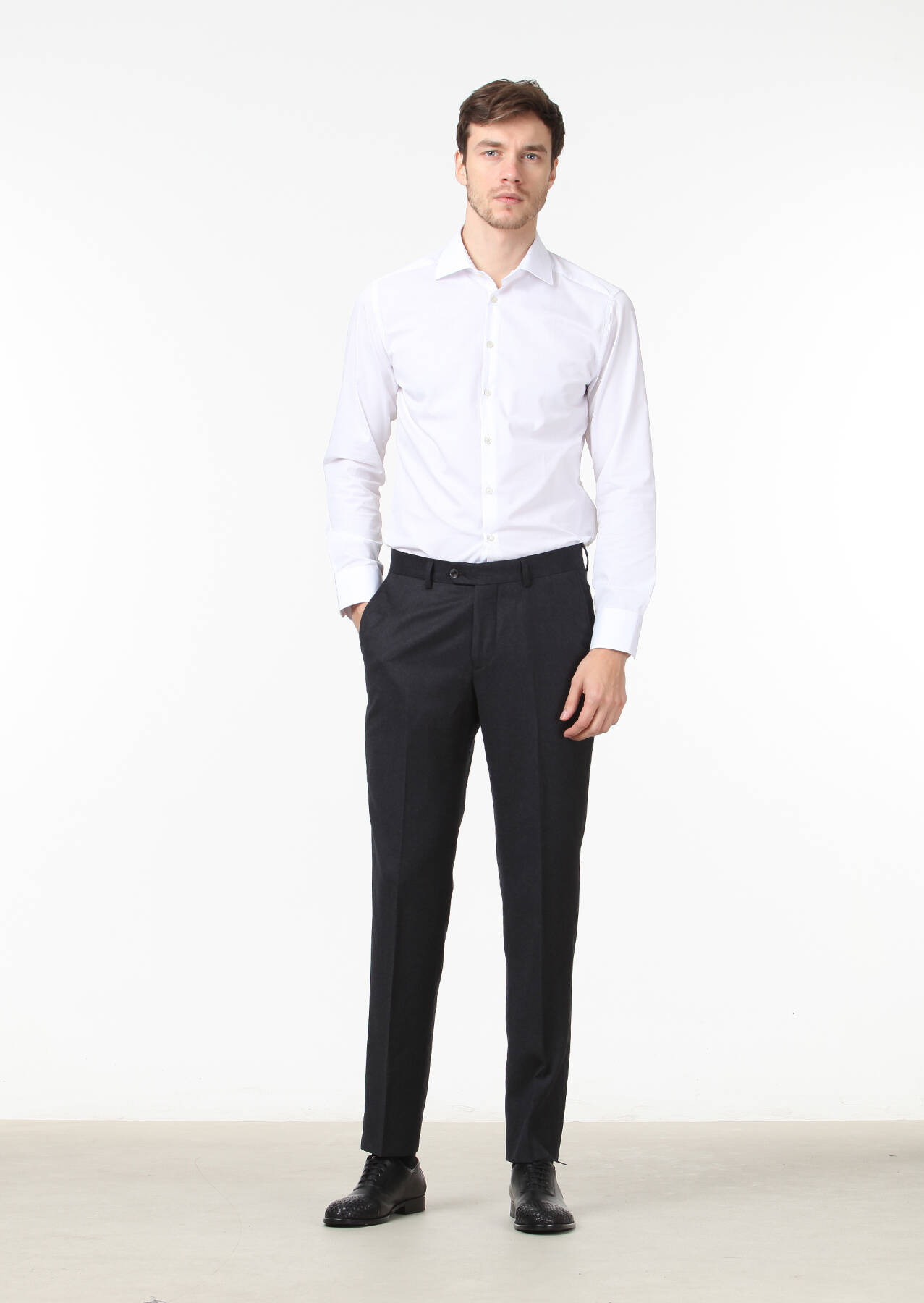 Hard Coal Weaving Regular Fit Classical 100% Wool Trousers