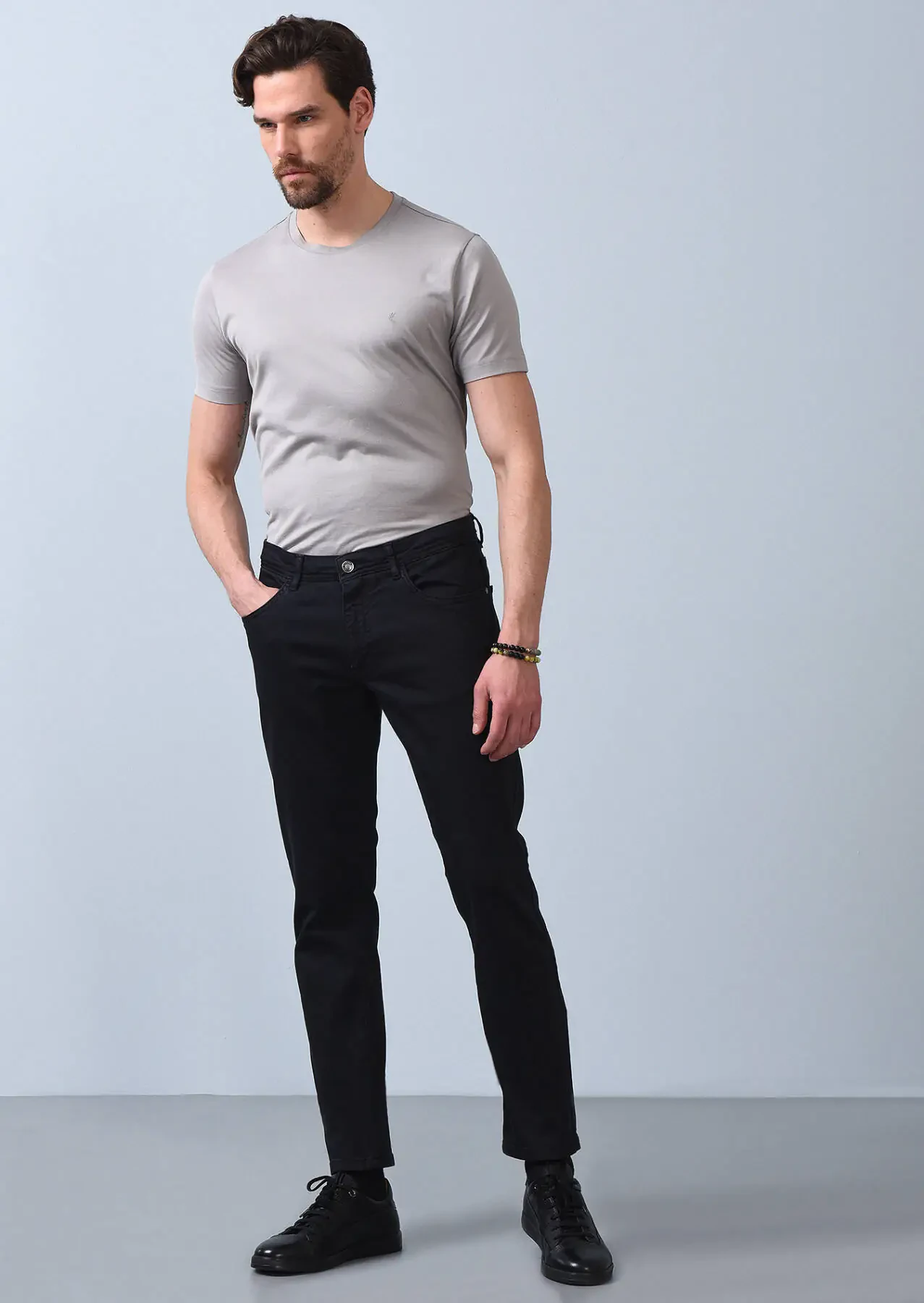 Hard Coal Weaving Slim Fit Casual Cotton Blended Trousers