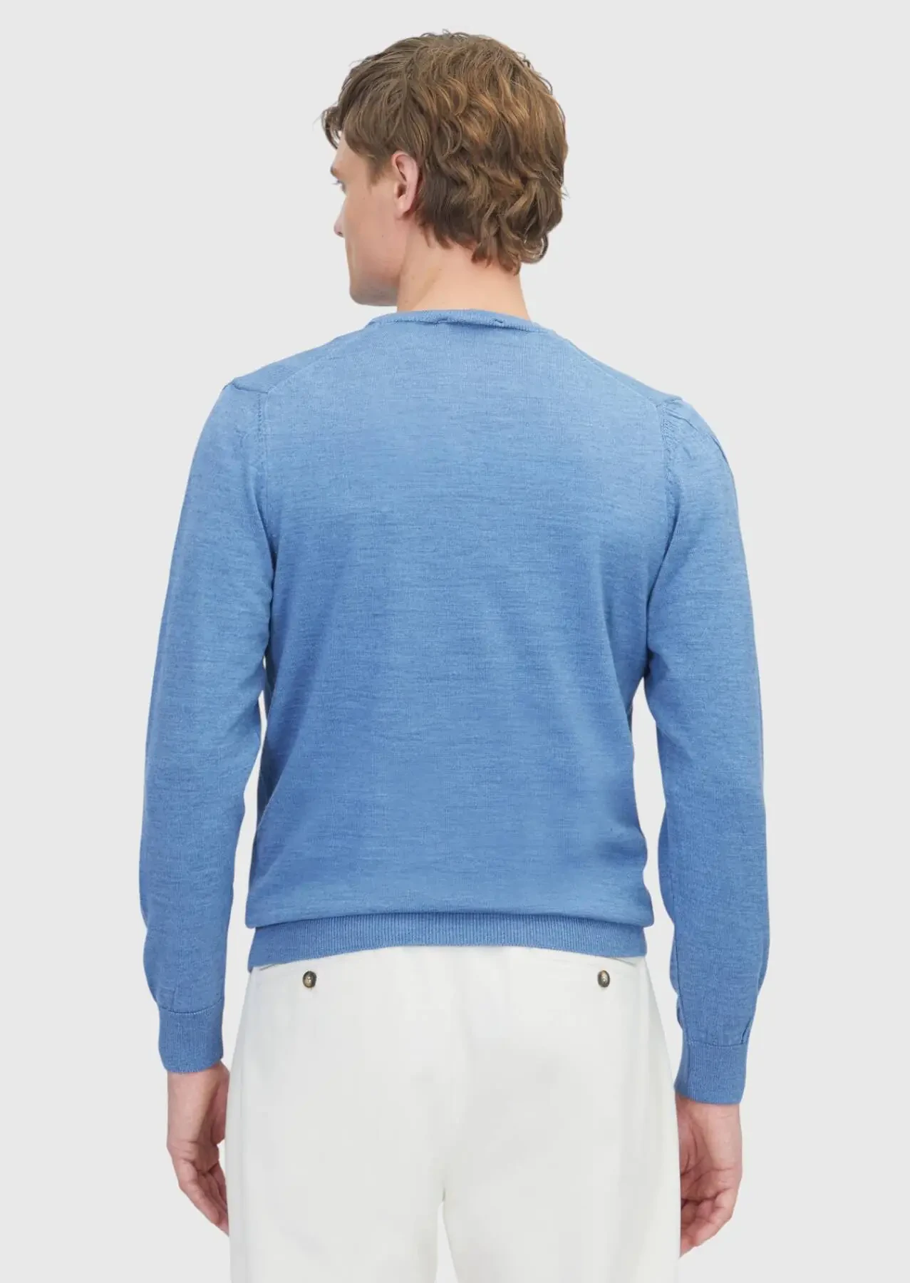İndigo Bisiklet Yaka Düz Örgü Yün Karışımlı Triko Kazak