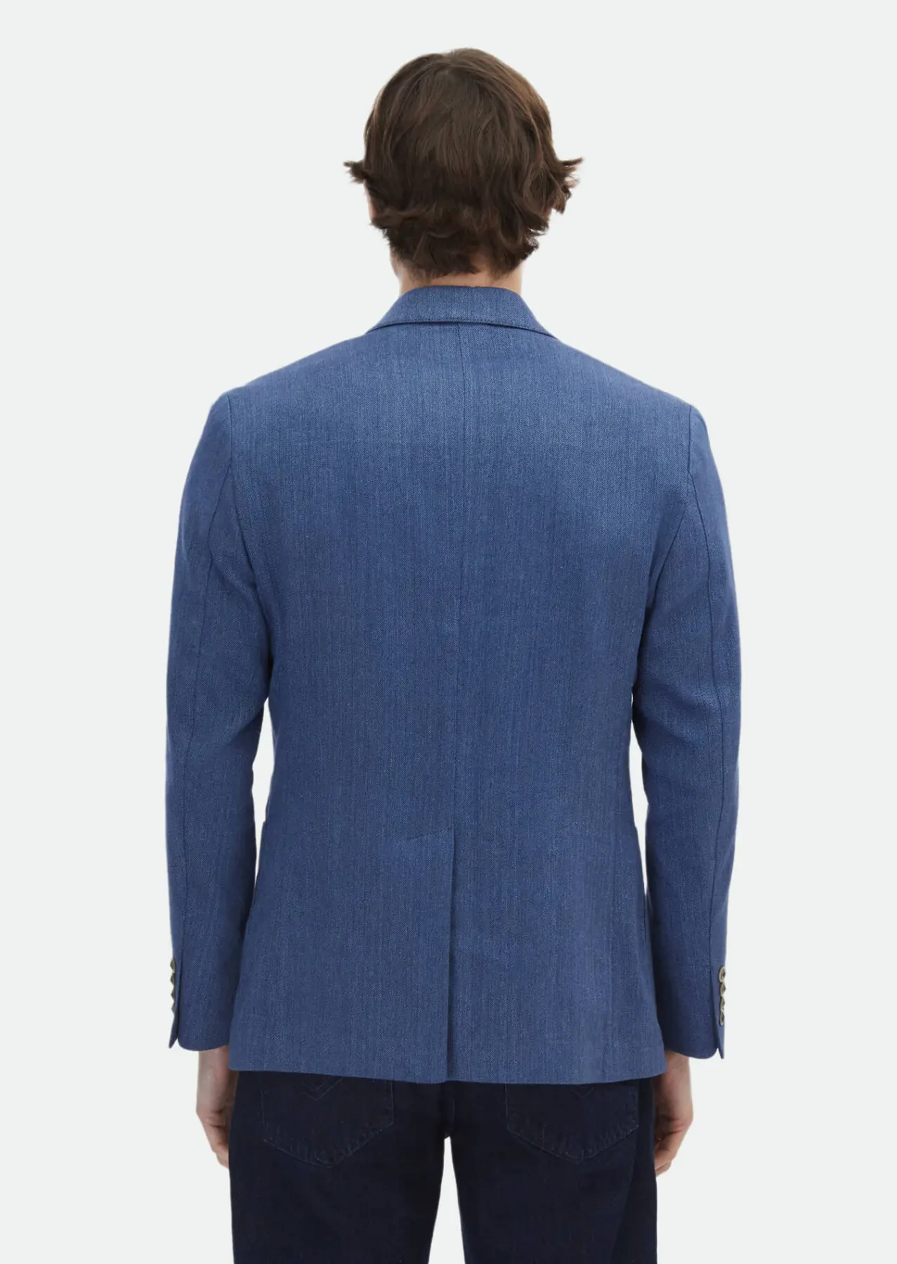 İndigo Desenli Zeroweight Slim Fit Pamuk Karışımlı Ceket