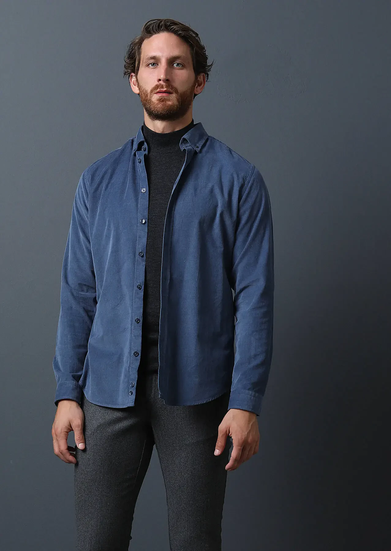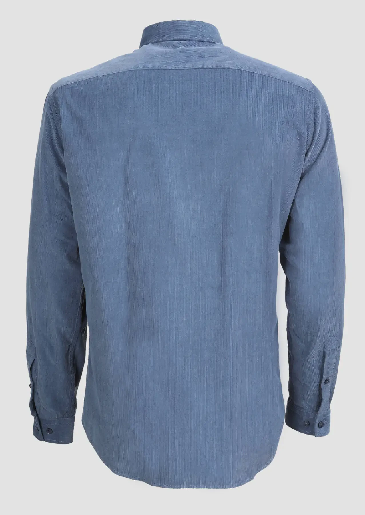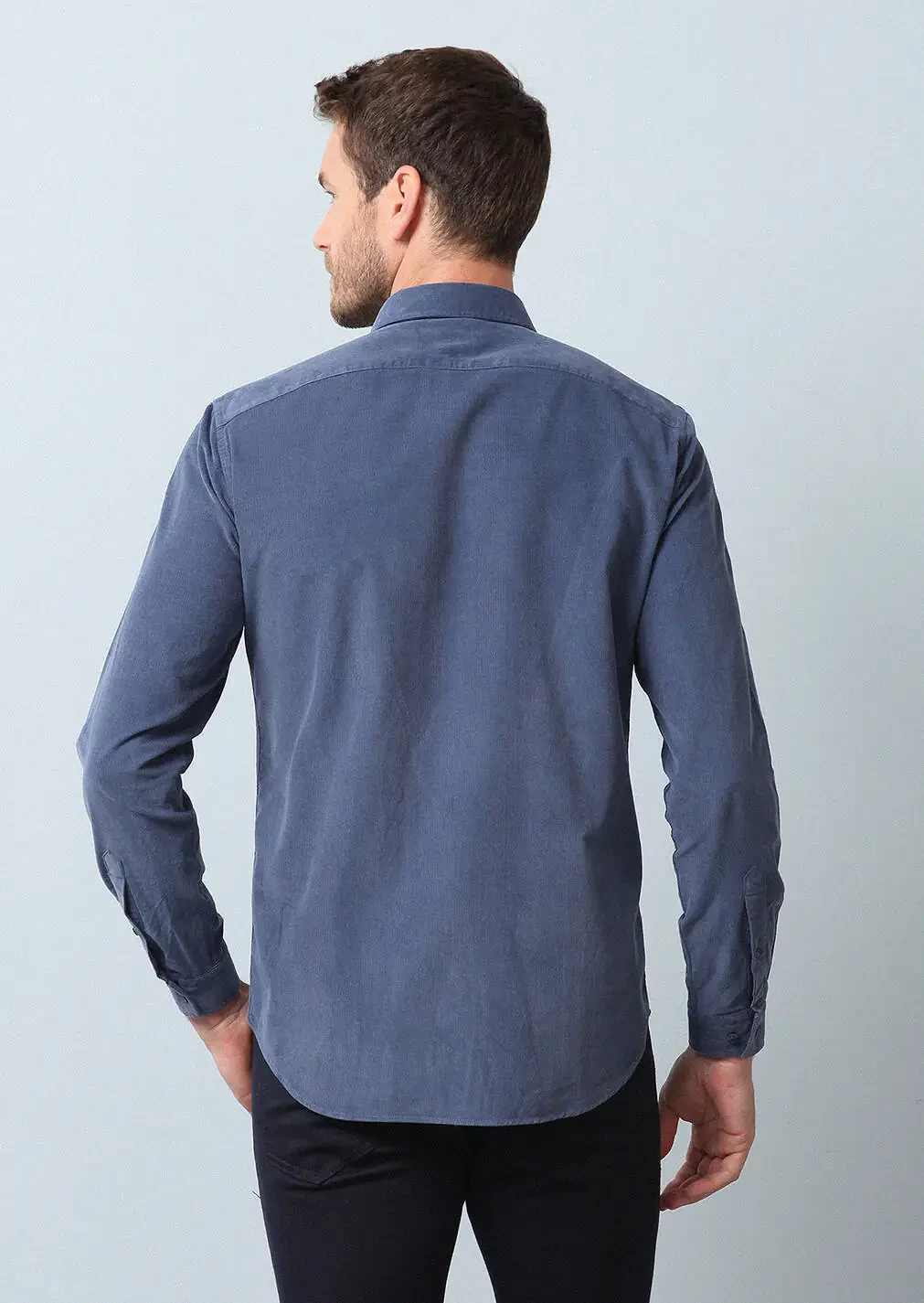 İndigo Fitilli Regular Fit Dokuma Kadife Casual %100 Pamuk Gömlek