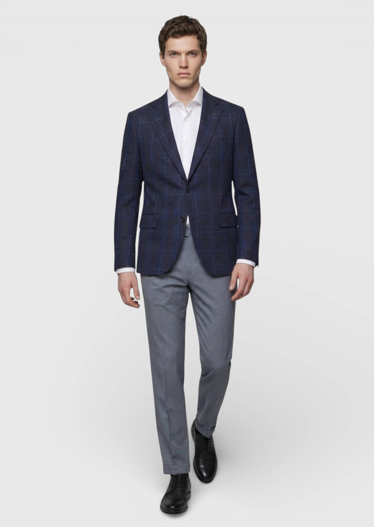 İndigo Kareli Zeroweight Slim Fit Yün Karışımlı Ceket