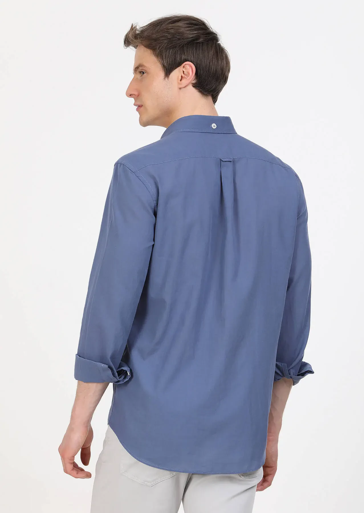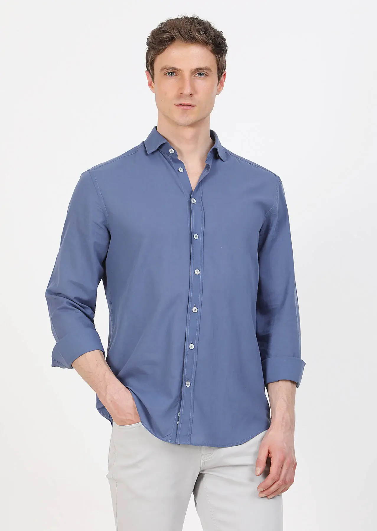 Indigo Plain Regular Fit Weaving Casual 100% Cotton Shirt