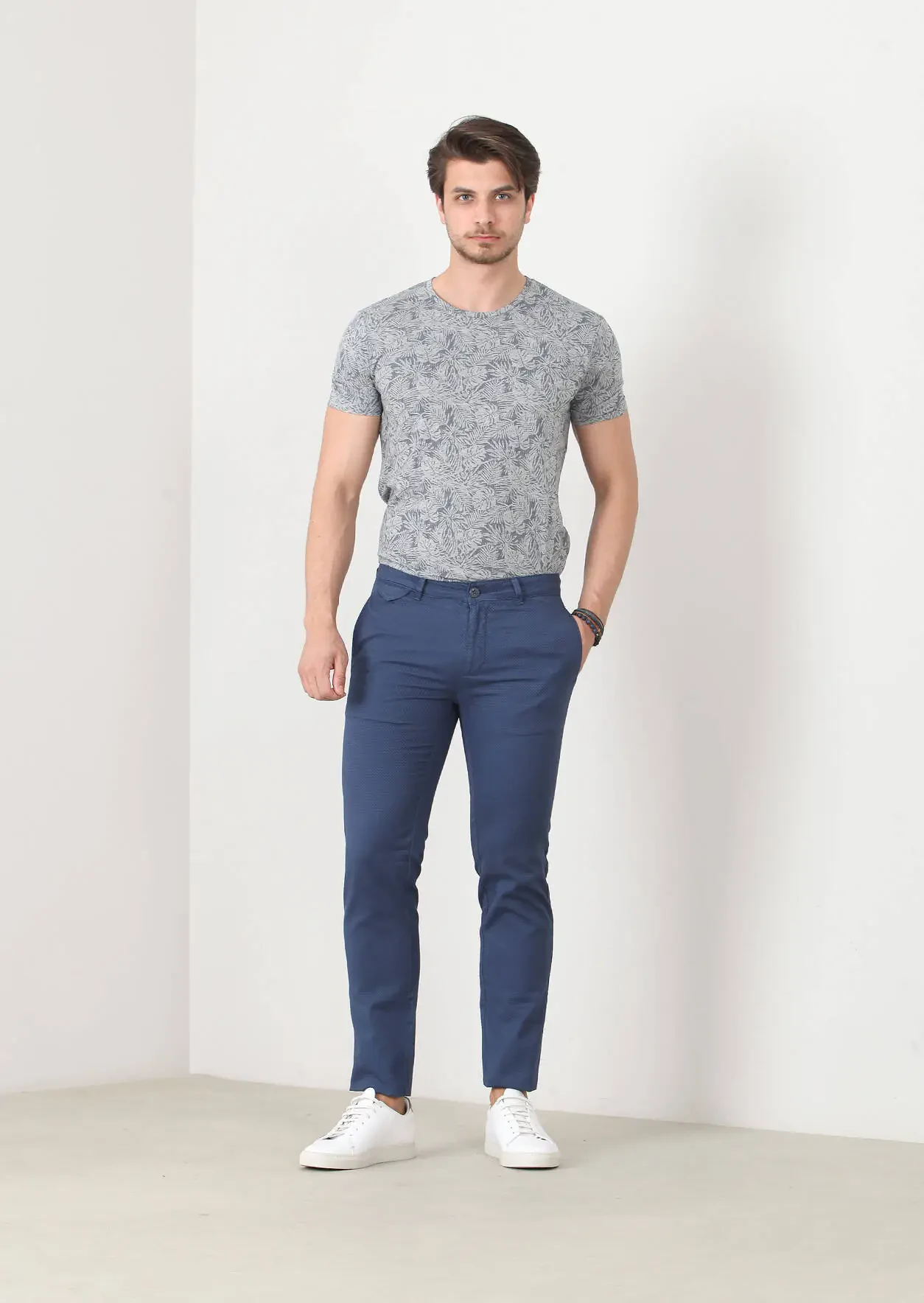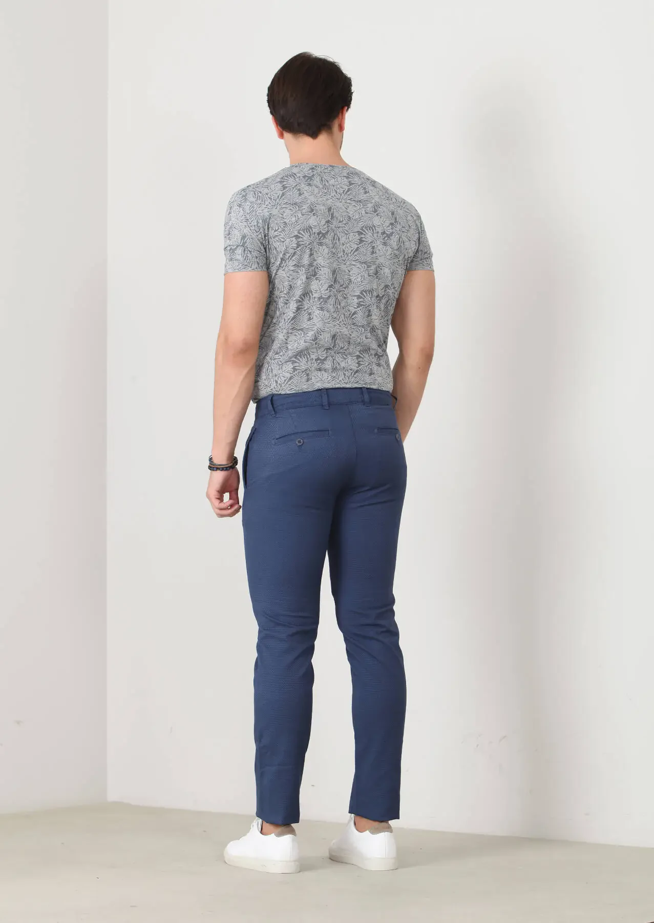Indigo Weaving Regular Fit Casual Cotton Blended Trousers