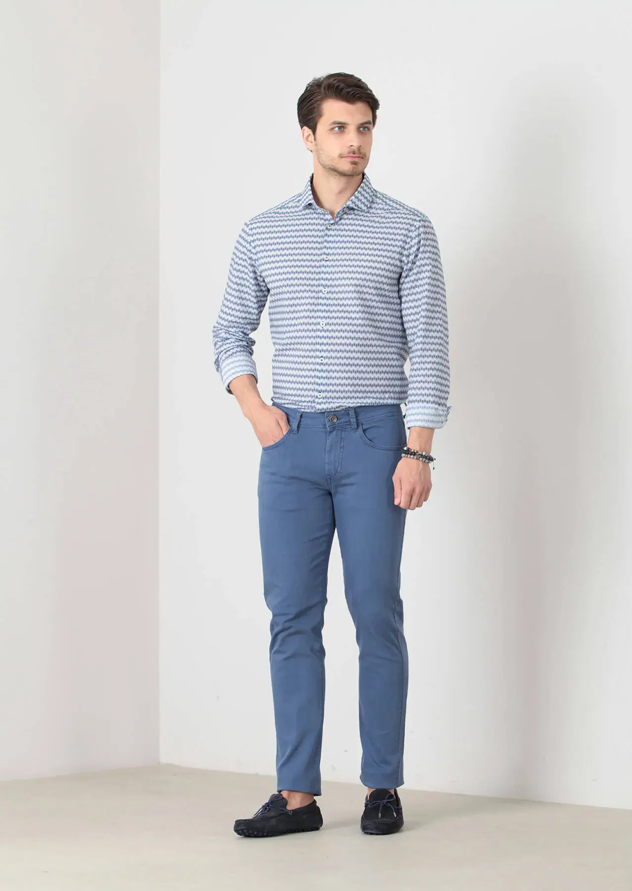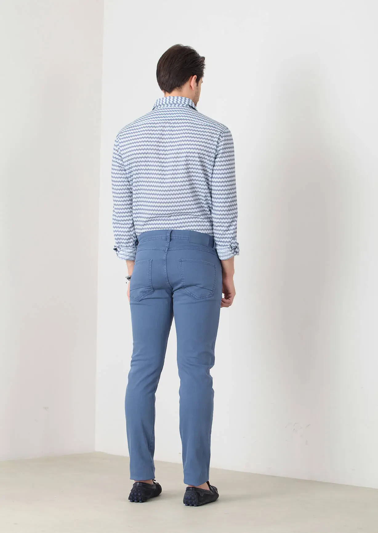 Indigo Weaving Slim Fit Casual Cotton Blended Trousers