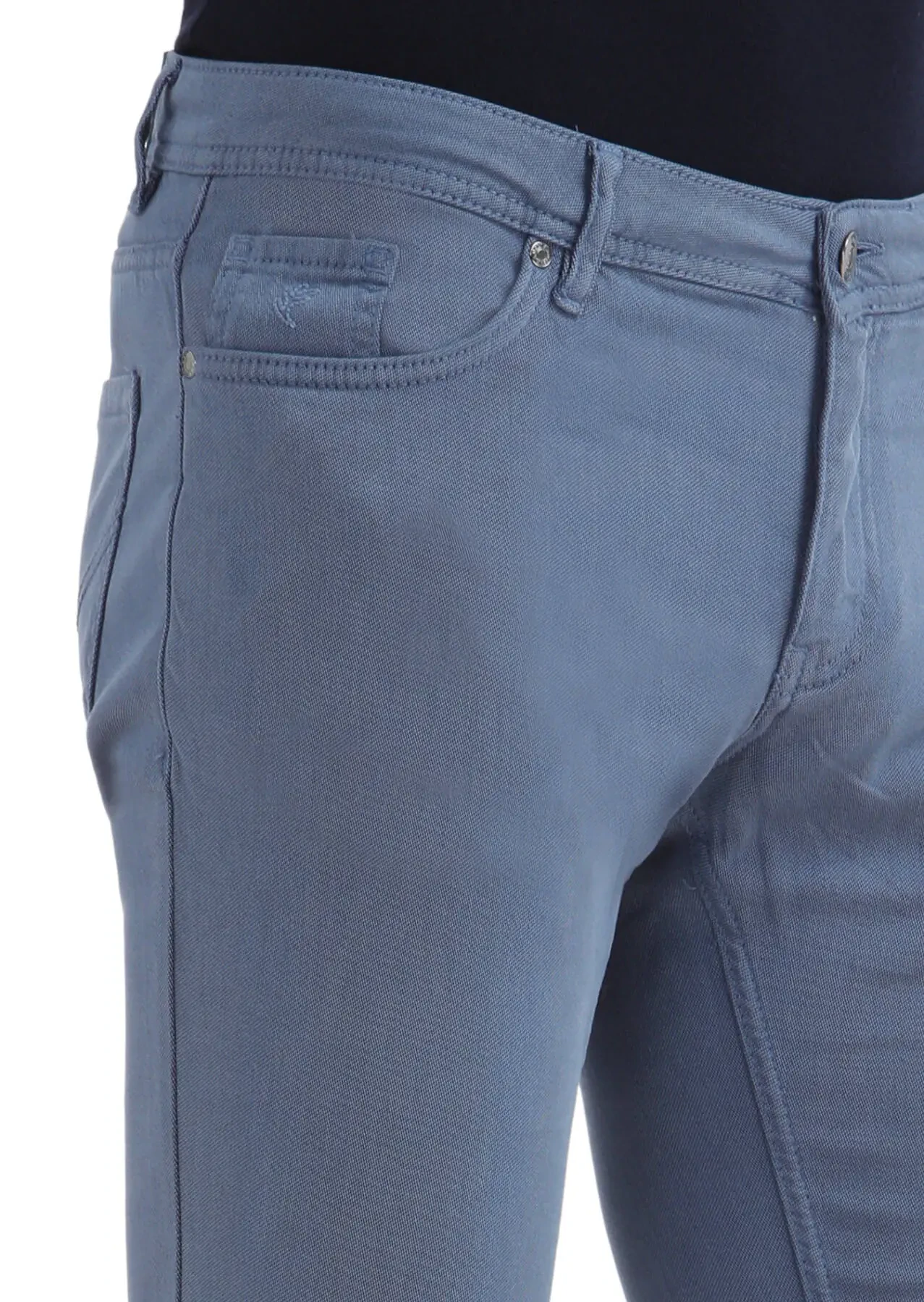 Indigo Weaving Slim Fit Casual Cotton Blended Trousers