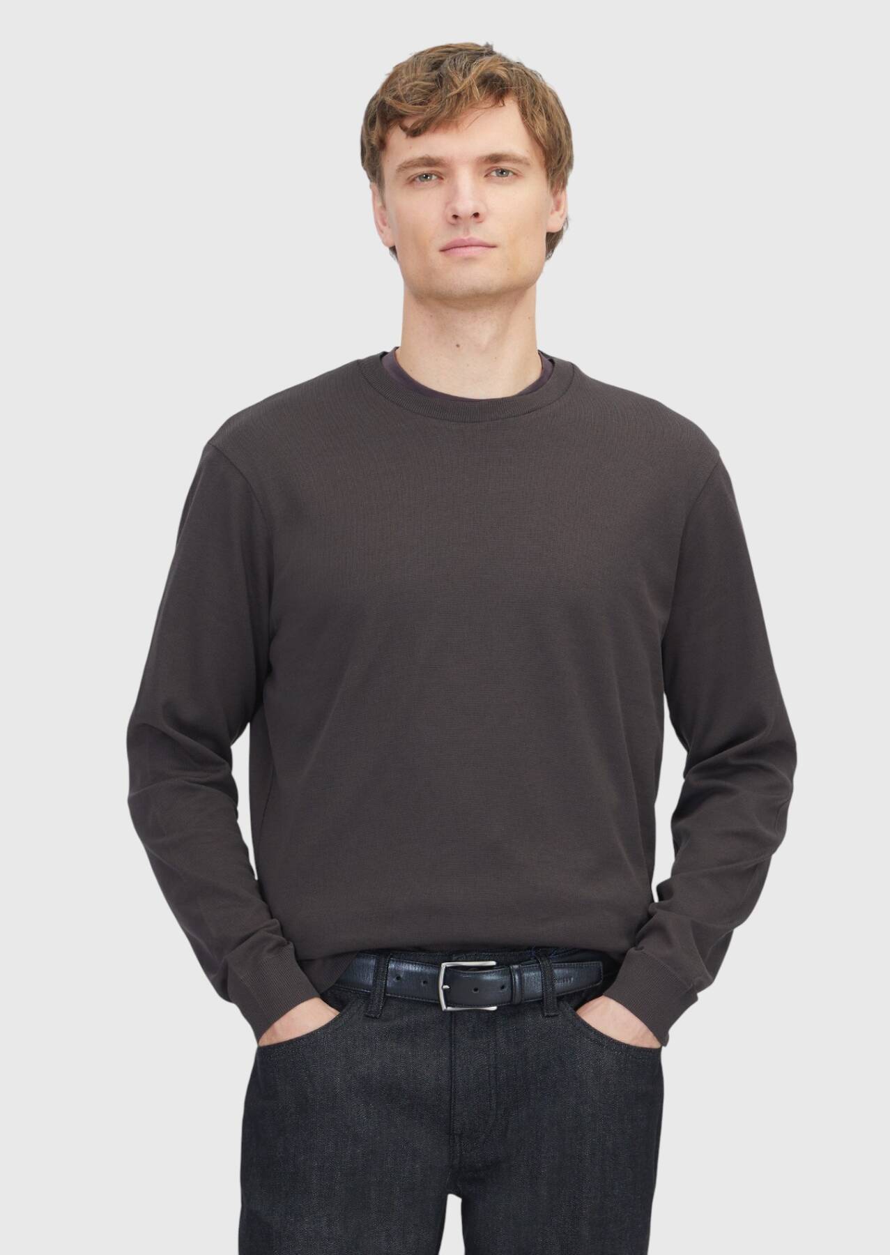 Kahverengi Bisiklet Yaka Düz Sweatshırt