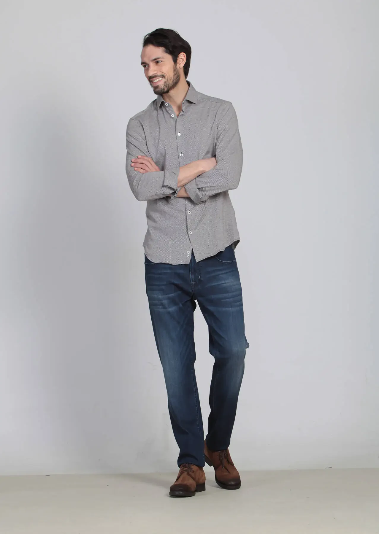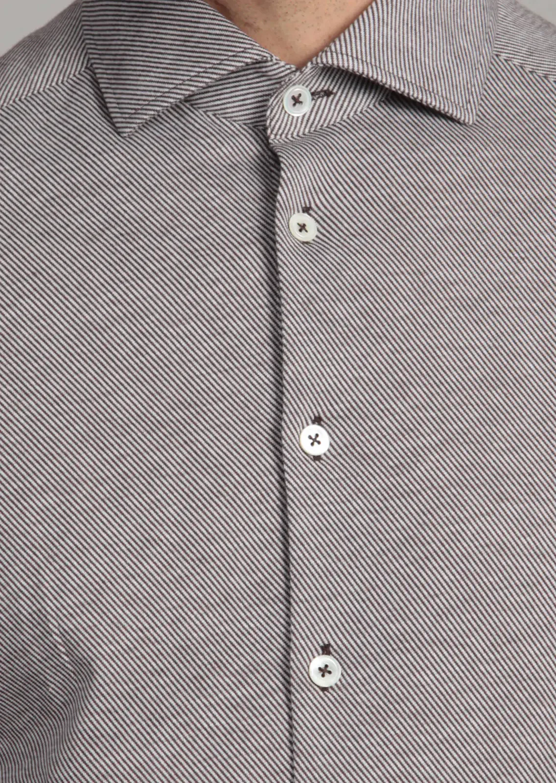 Kahverengi Desenli Slim Fit Casual %100 Pamuk Gömlek