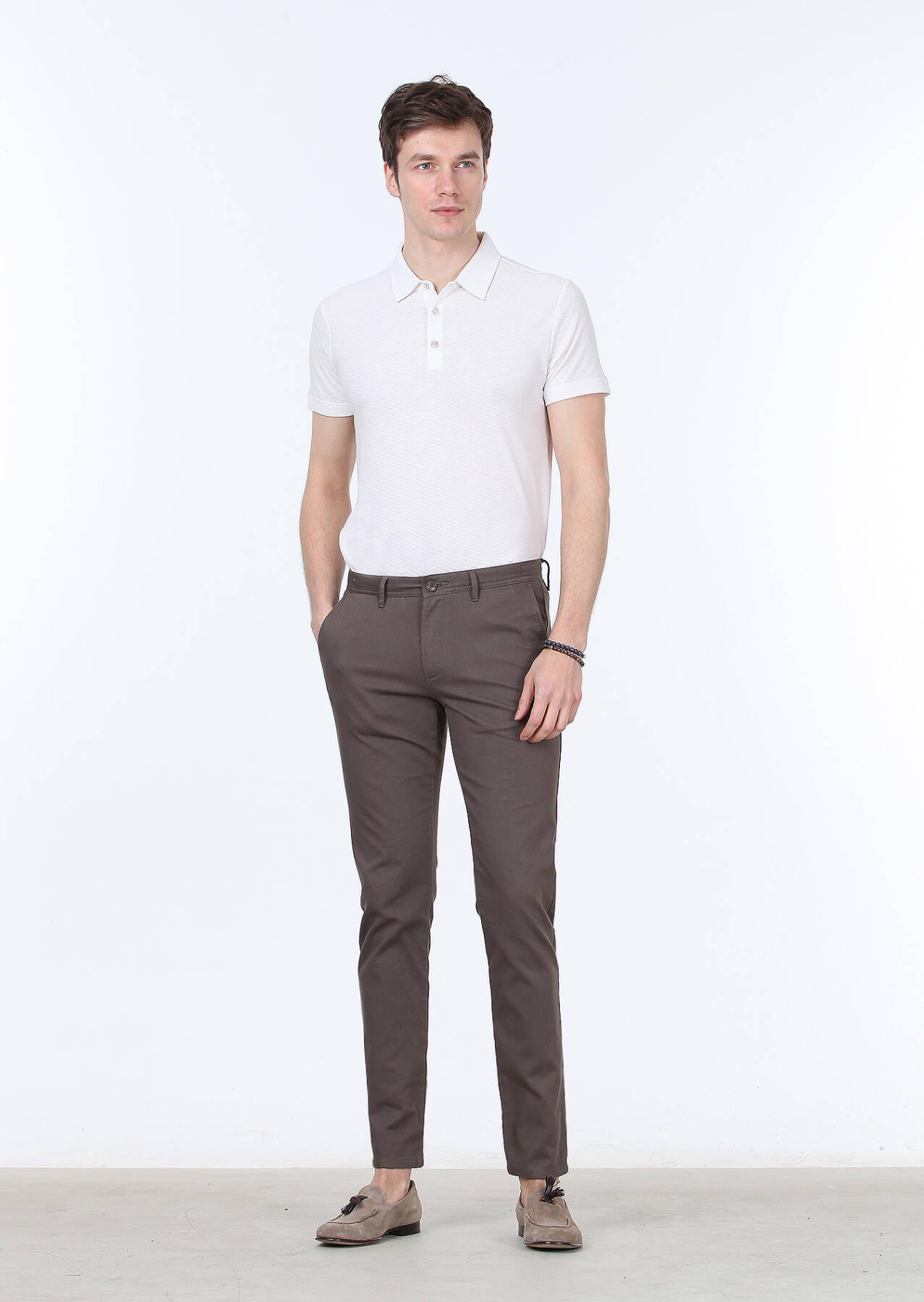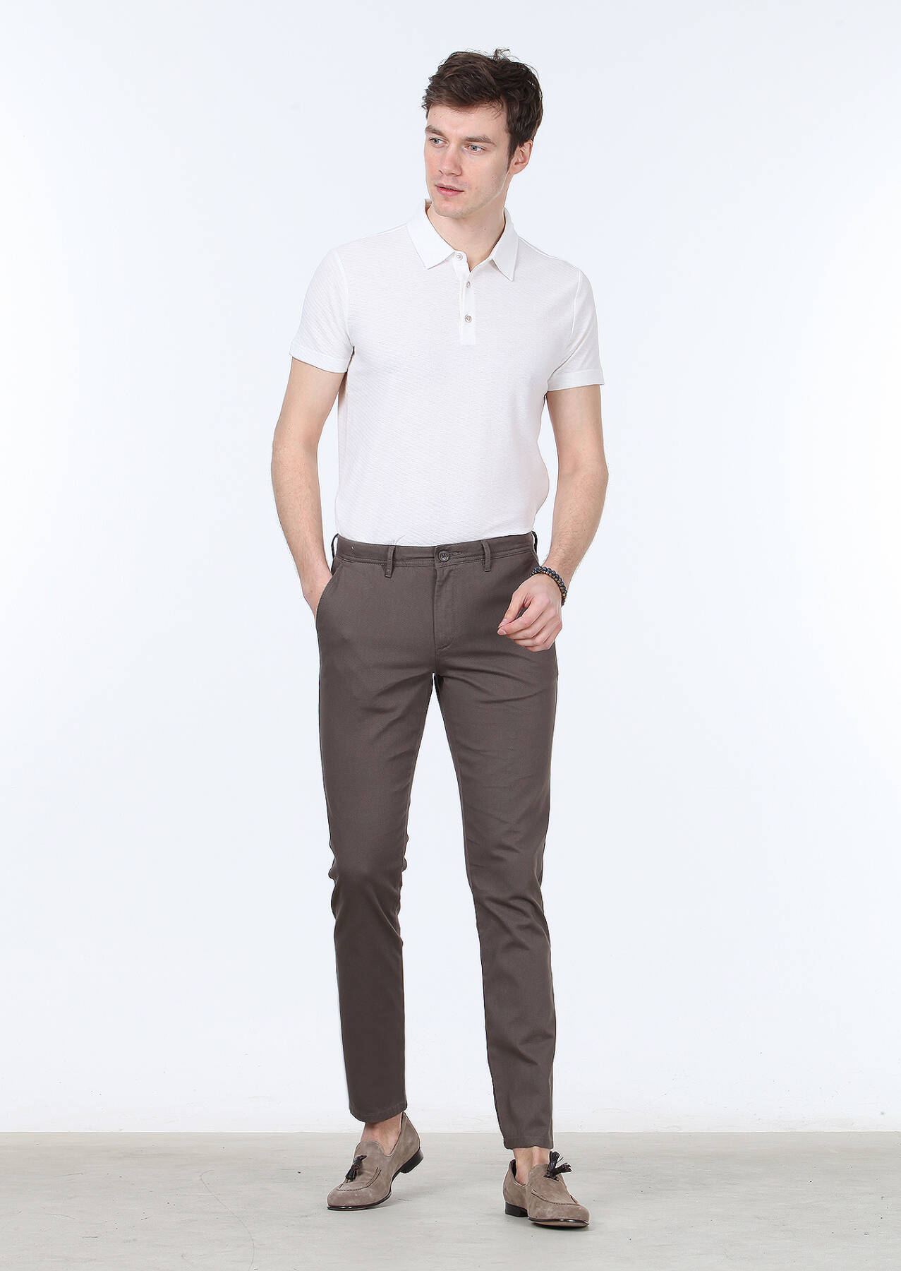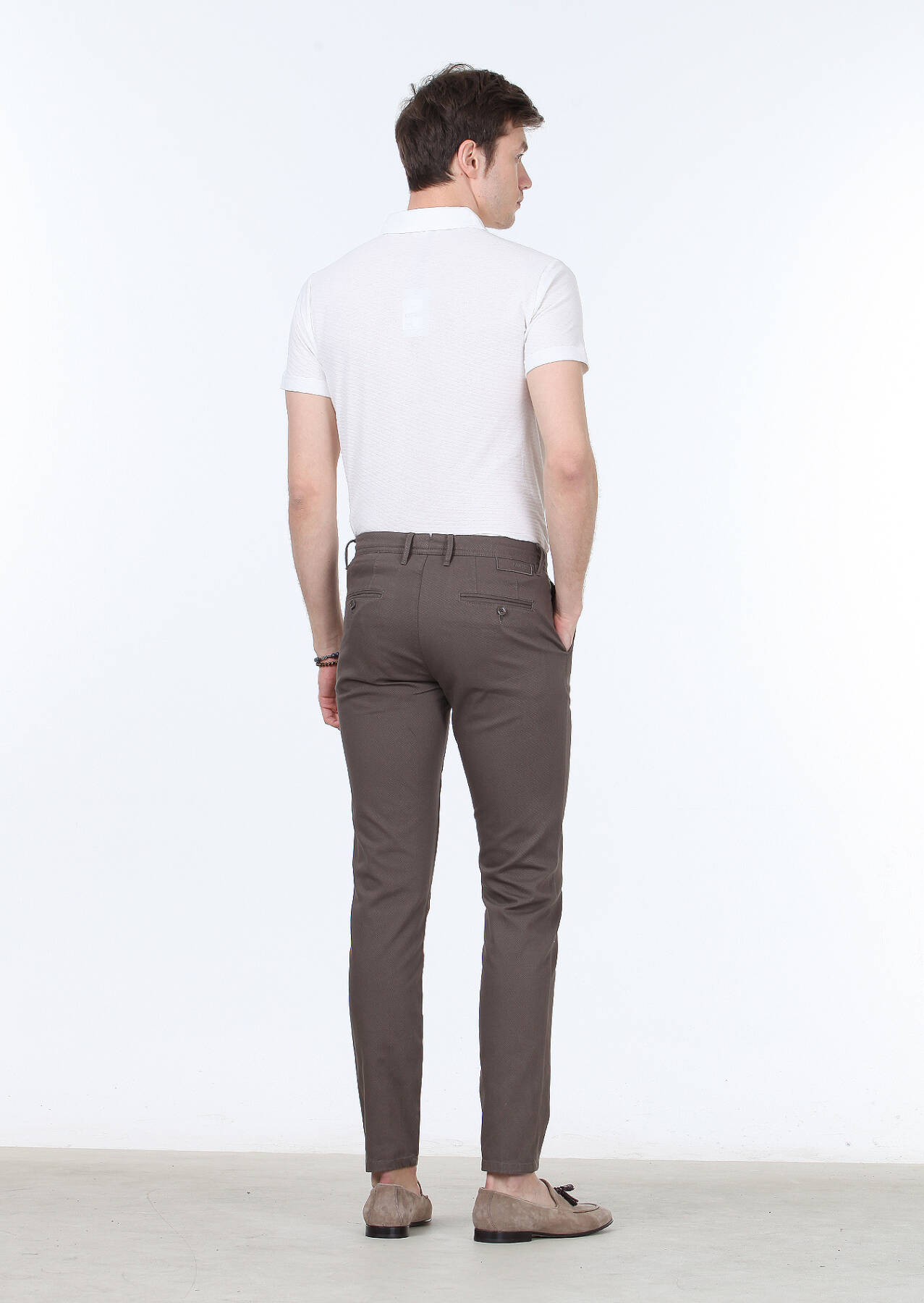 Kahverengi Dokuma Regular Fit Casual Pamuk Karışımlı Pantolon