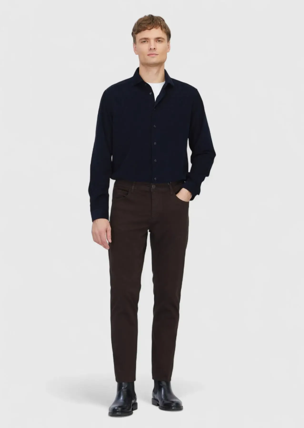 Kahverengi Düz Dokuma Slim Fit Casual Pamuk Karışımlı Pantolon